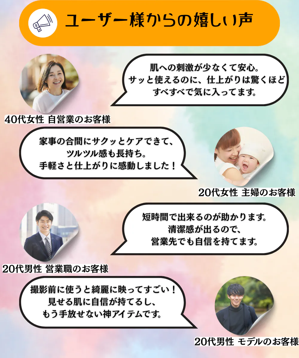 ・ご使用前後にクリームやローションを塗り保湿をしてください。