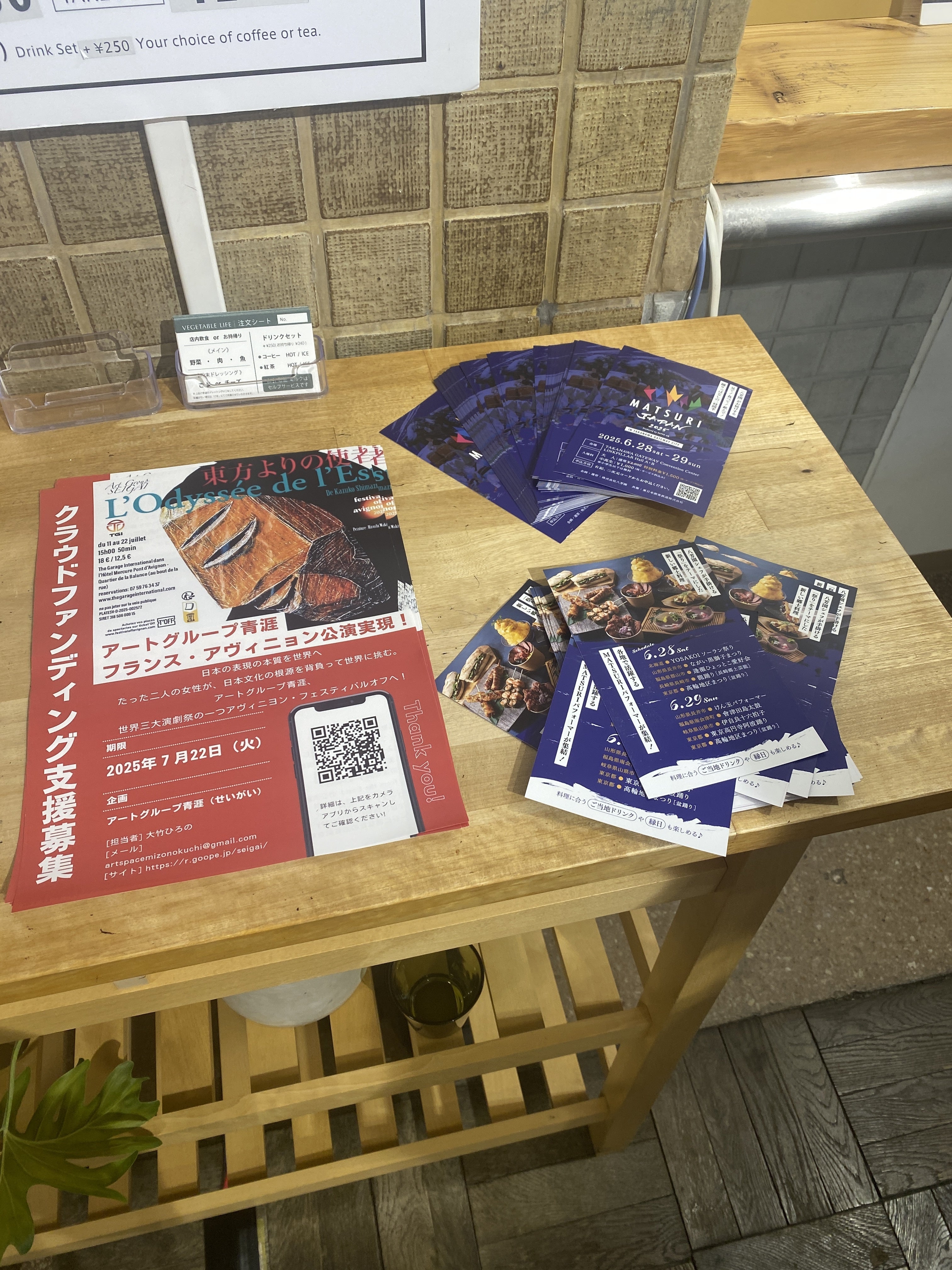 クラファンチラシ完成、今日から配布始めました。ご協力頂いたVegetableカフェの方、日仏演劇協会の皆様、ありがとうございます!