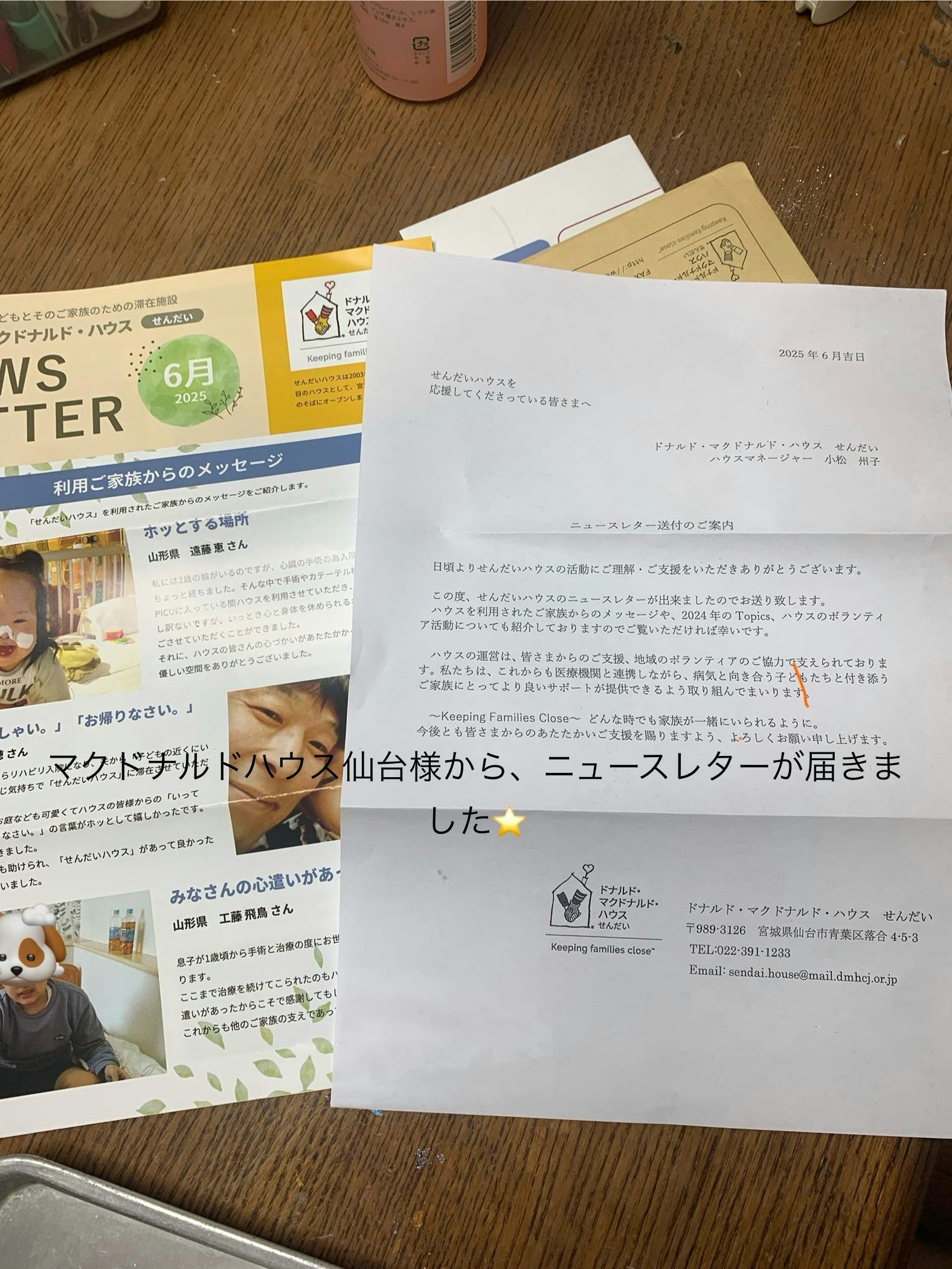 マクドナルドハウス仙台から、ニュースレターが送られてきました!