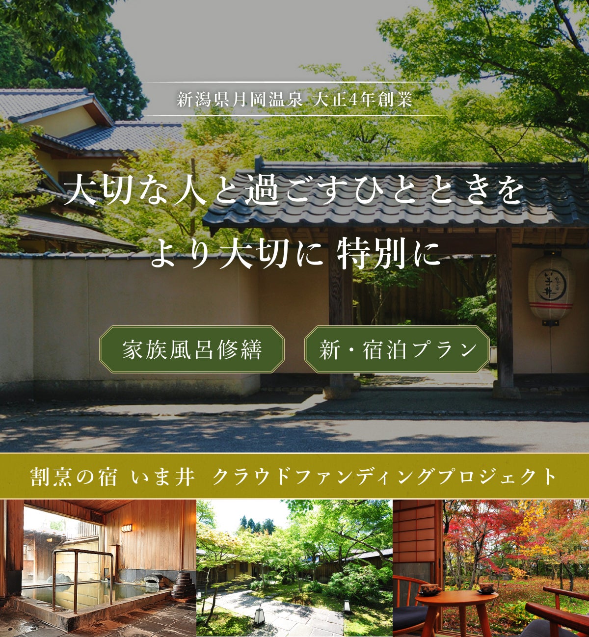 日本有数の“美肌の湯”として知られる月岡温泉の上質なお湯と山海の幸を味わえる会席料理を楽しみ、癒しの時間を過ごせる宿として、創業以来多くのお客様に愛されてきた割烹の宿 いま井。
