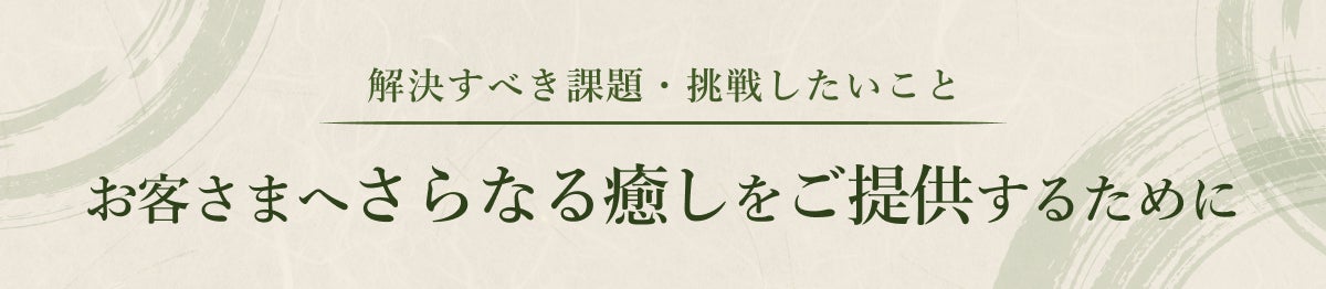 創業以来大切にしてきた癒しの時間をこれからも過ごしていただくために、そしてこれまでよりもさらに成長したおもてなしでお客様をお迎えするために私たちが解決しなければいけない課題。