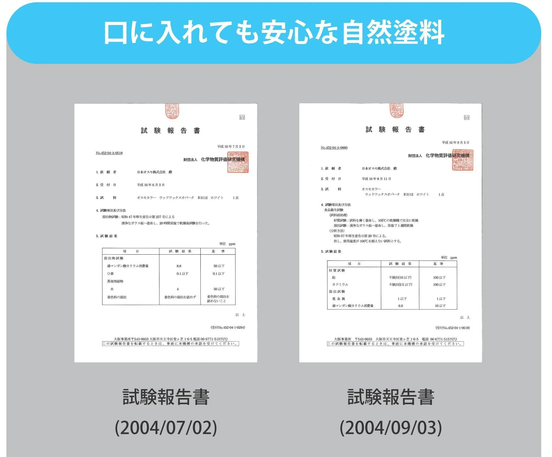 ■オスモカラーの試験報告書