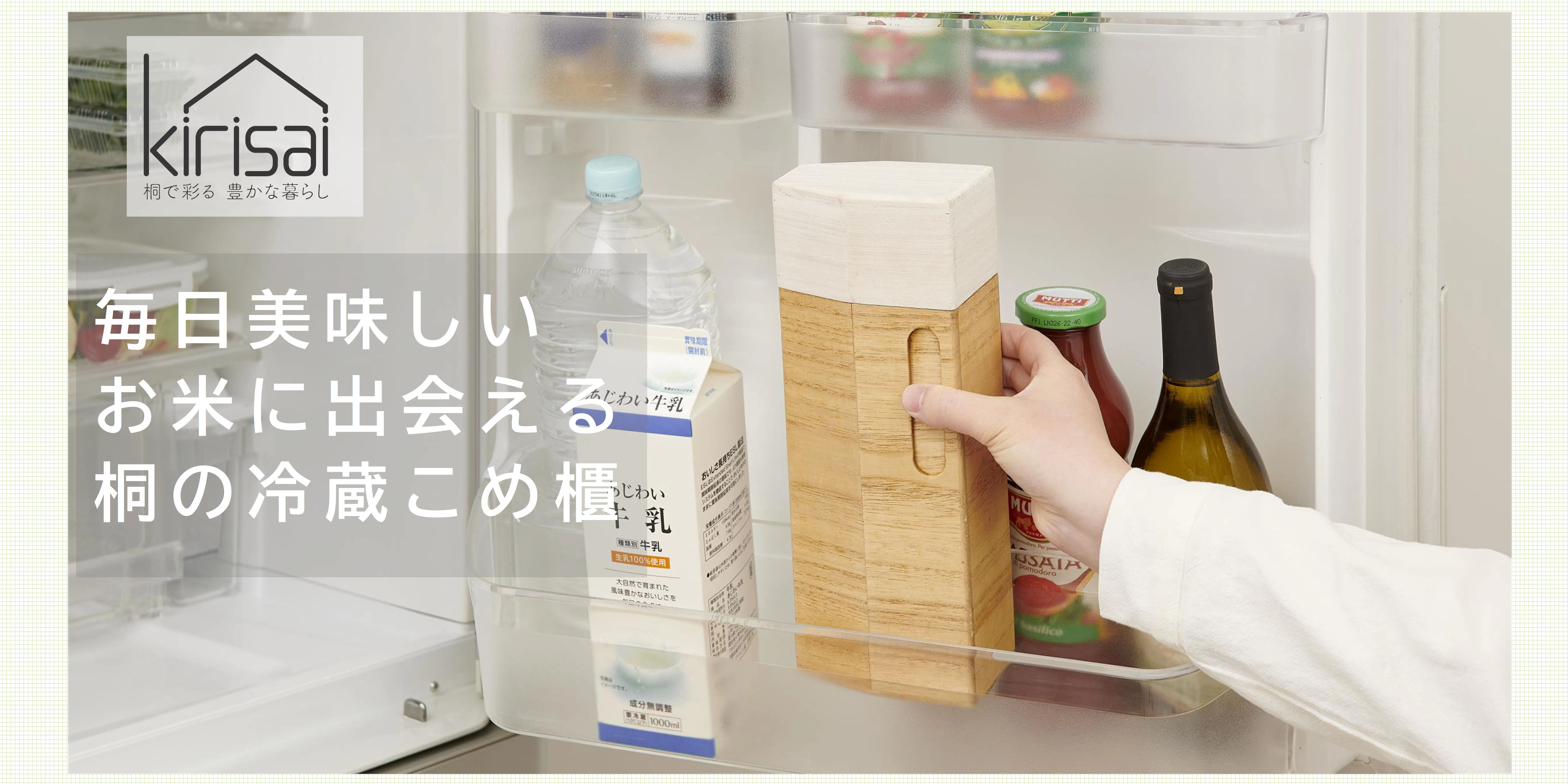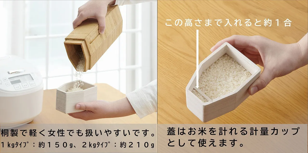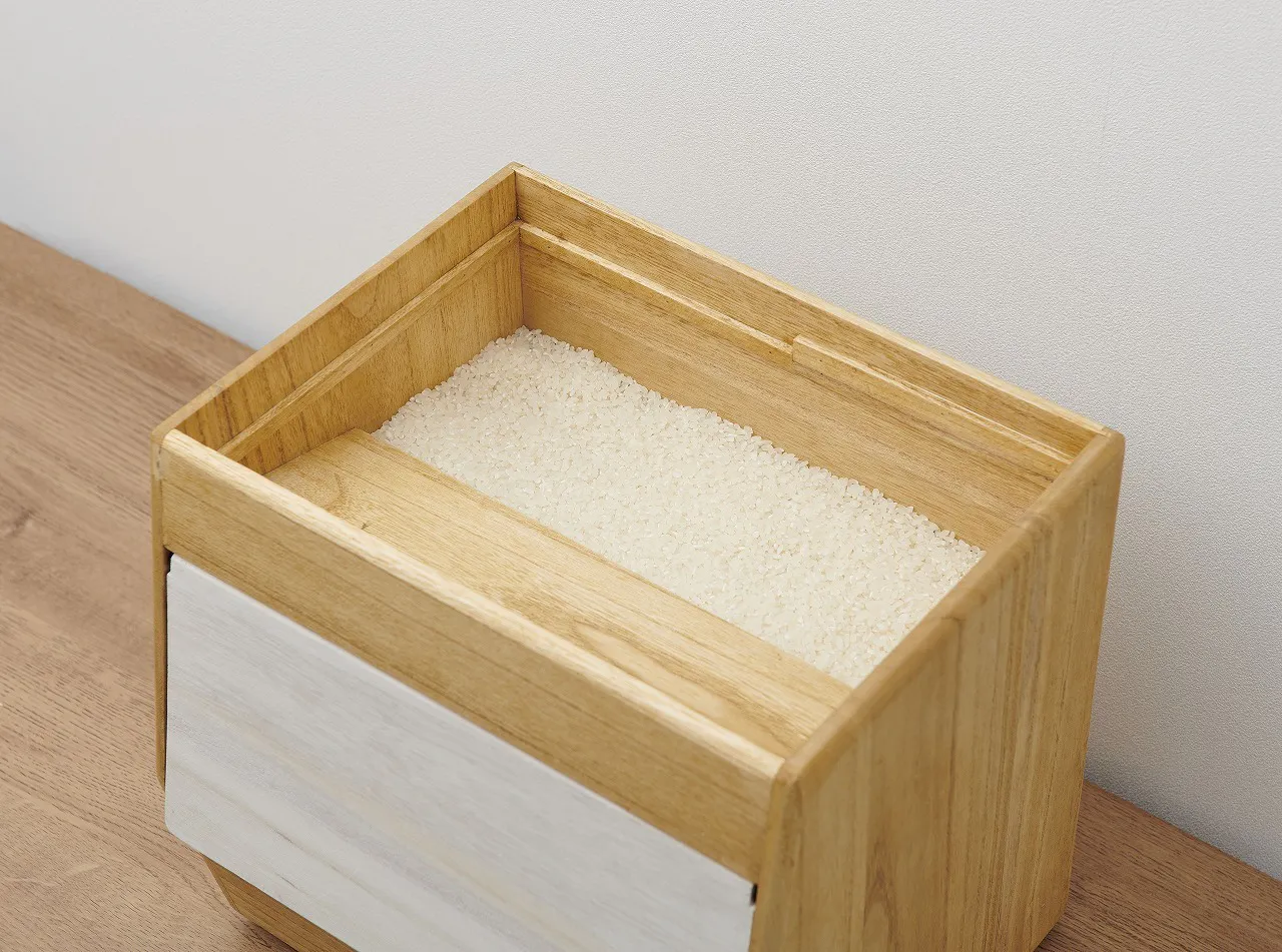 美味しいご飯のためにお米や、その炊き方にこだわっている方は多いと思います。ちゃんとお米の美味しさ、引き出せていますか?お米の美味しさ引き出すには温度管理と湿度管理が大切です。お米マイスターに言わせると温度変化の少ない冷蔵庫での保管がベスト。しかし冷蔵庫の中は保管場所や保存食材によって湿度が変わります。また冷蔵庫の中は日によっては食材の保存量が多くなったりで保存スペースにも困ります。そこでお使い頂きたいのが桐の冷蔵こめ櫃。桐本来の調湿性でお米の弱点の湿度を適正管理してくれ、収納場所にも困らないスリム設計なので冷蔵庫のドアポケットや野菜庫などの引出しにも入ります。