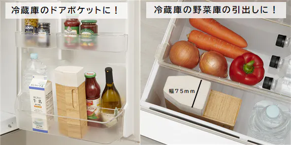 スリムな設計なので冷蔵庫の中でもすっぽり収まります。