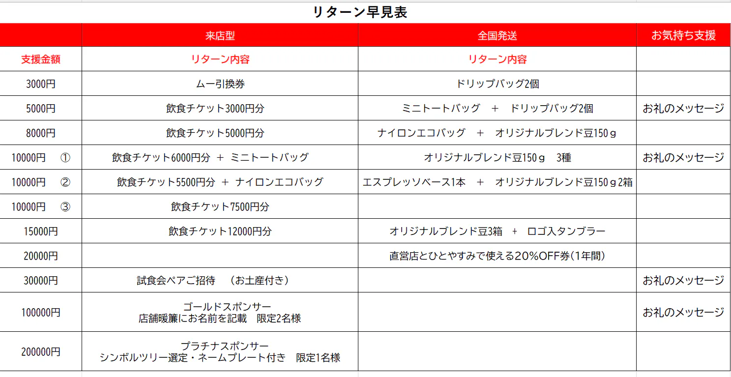 来店型と来店が難しい方用に全国発送可能な2タイプのリターンを準備いたしました。