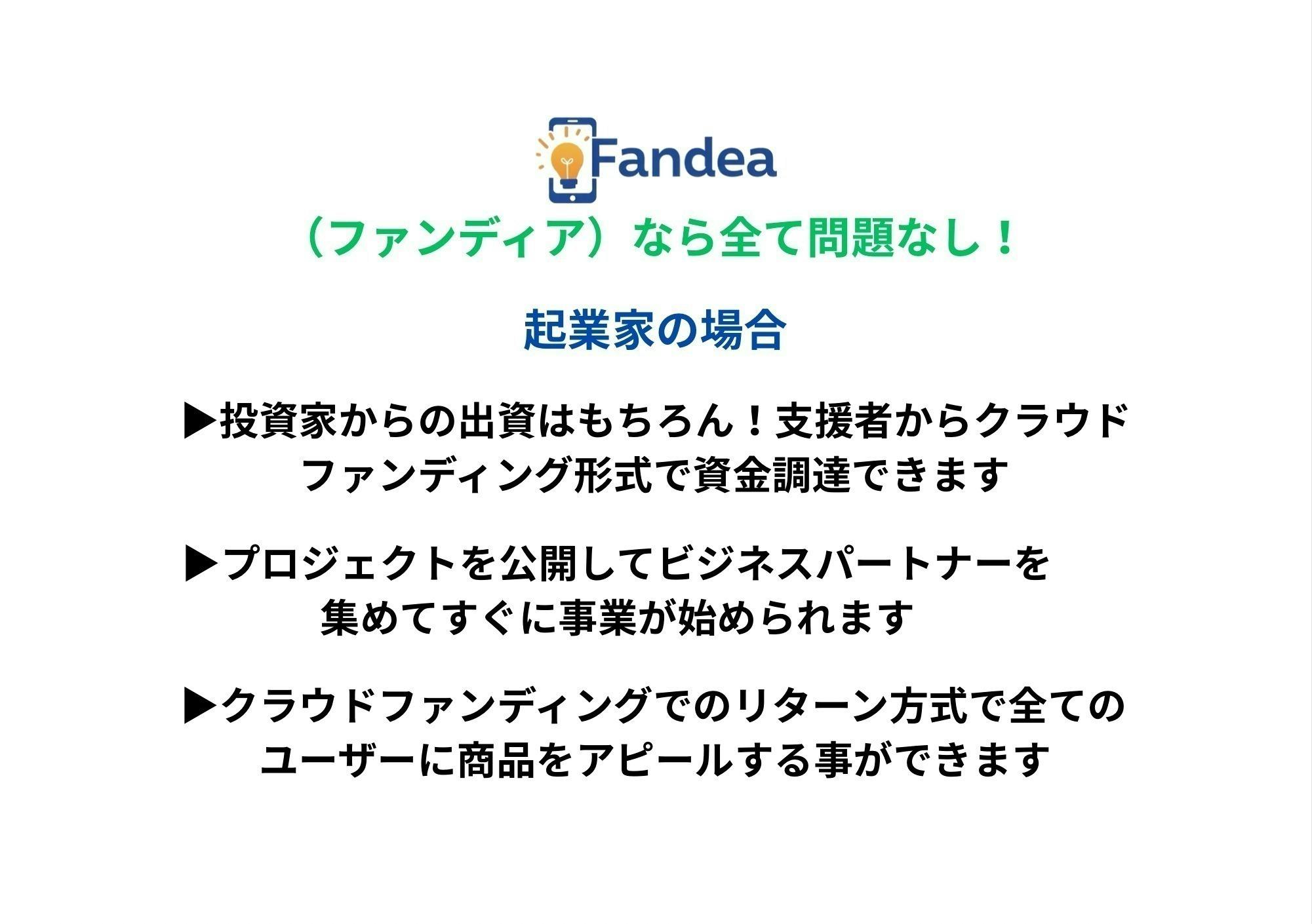 2025/04/14 08:56こんにちは、Fandea(ファンディア)開発チームです!本日、私たちの新しい挑戦「Fandea」プロジェクトが正式にスタートしました!!!Fandeaは、起業家×投資家×アプリユーザーがつながり、共にビジネスを育てる参加型ビジネスマッチング・クラウドファンディングアプリです。起業家は、自分のビジネスアイデアや必要な人材をアプリで公開。集まったメンバーでプレゼンを行い、投資家やユーザーにアピール!マッチング後は出資を受けたり、クラファンでユーザーがプロジェクトを応援する流れです。 なぜ今、Fandeaが必要なのか?例えば…技術があるのにチームがいないエンジニア志はあるが資金がないクリエイター共感できる夢に“共に参加したい”ユーザーや支援者そんなすべての人が、「Fandeaの家」でつながり、動き出すことができます現在、アプリ開発と運営のための支援を募集しています!私たちの想いに共感いただける方は、ぜひページをご覧ください。支援者の皆様にとっても、「未来のビジネスを最初に応援できる」特別な体験になります今後も進捗や開発の裏側をどんどん共有していきます!応援よろしくお願いします!!! もっと見る