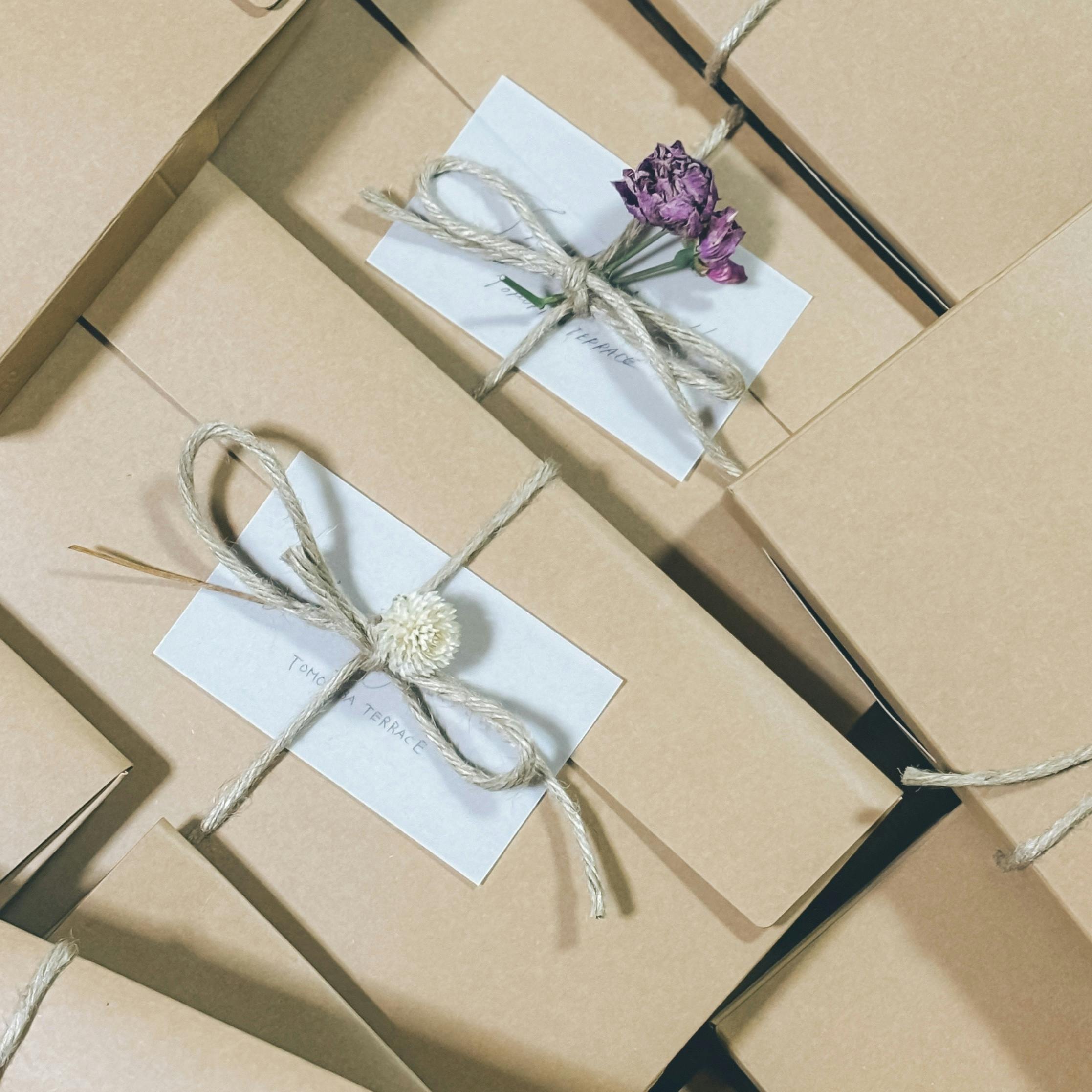 トモリバらしい、シンプルでさりげない可愛さを大切にしながら、ラッピングを行っています。