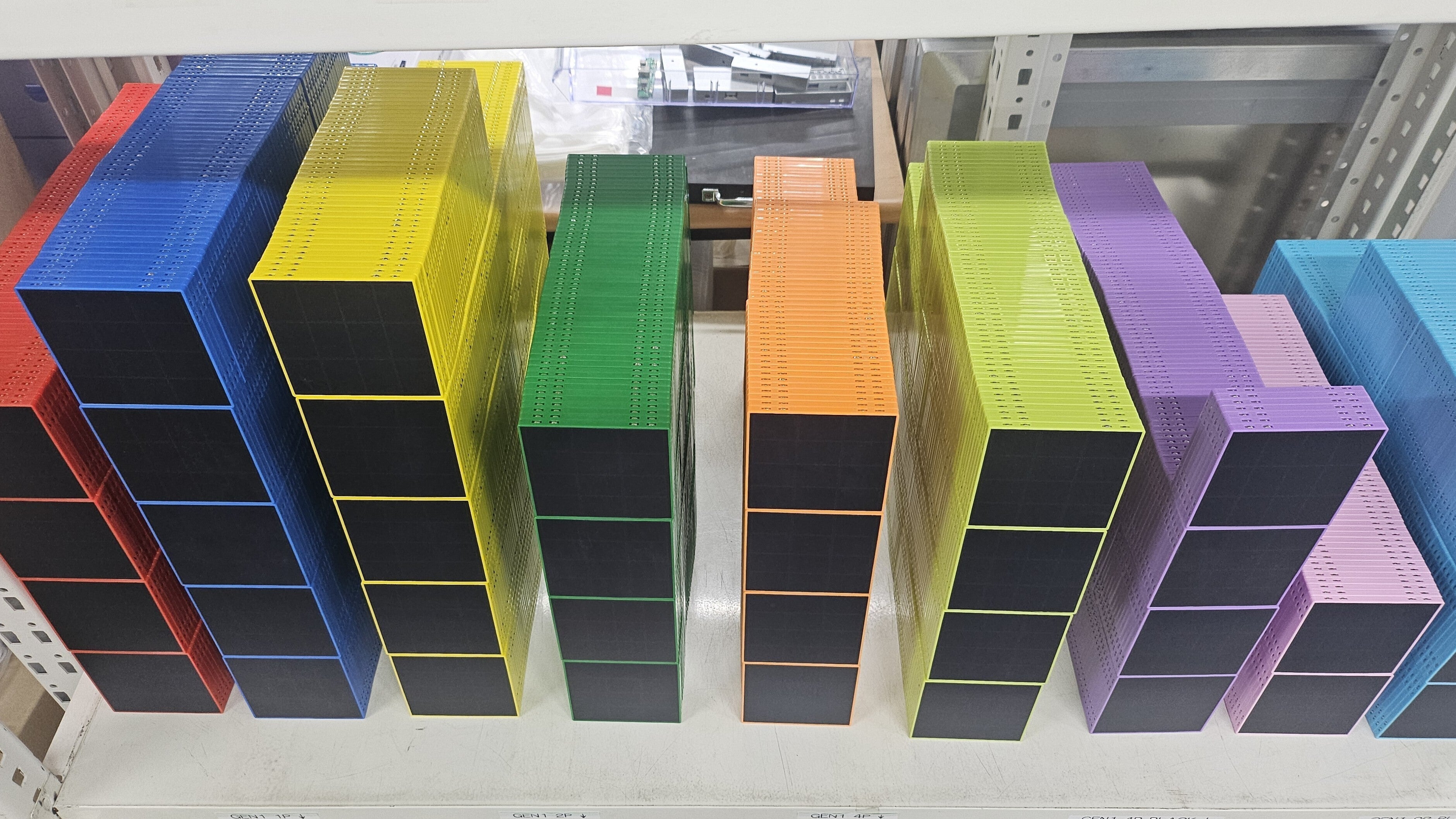 A: パネル1個の重さは41g、コントローラ1個の重さは28g、スチールケース1個の重さは150gです。