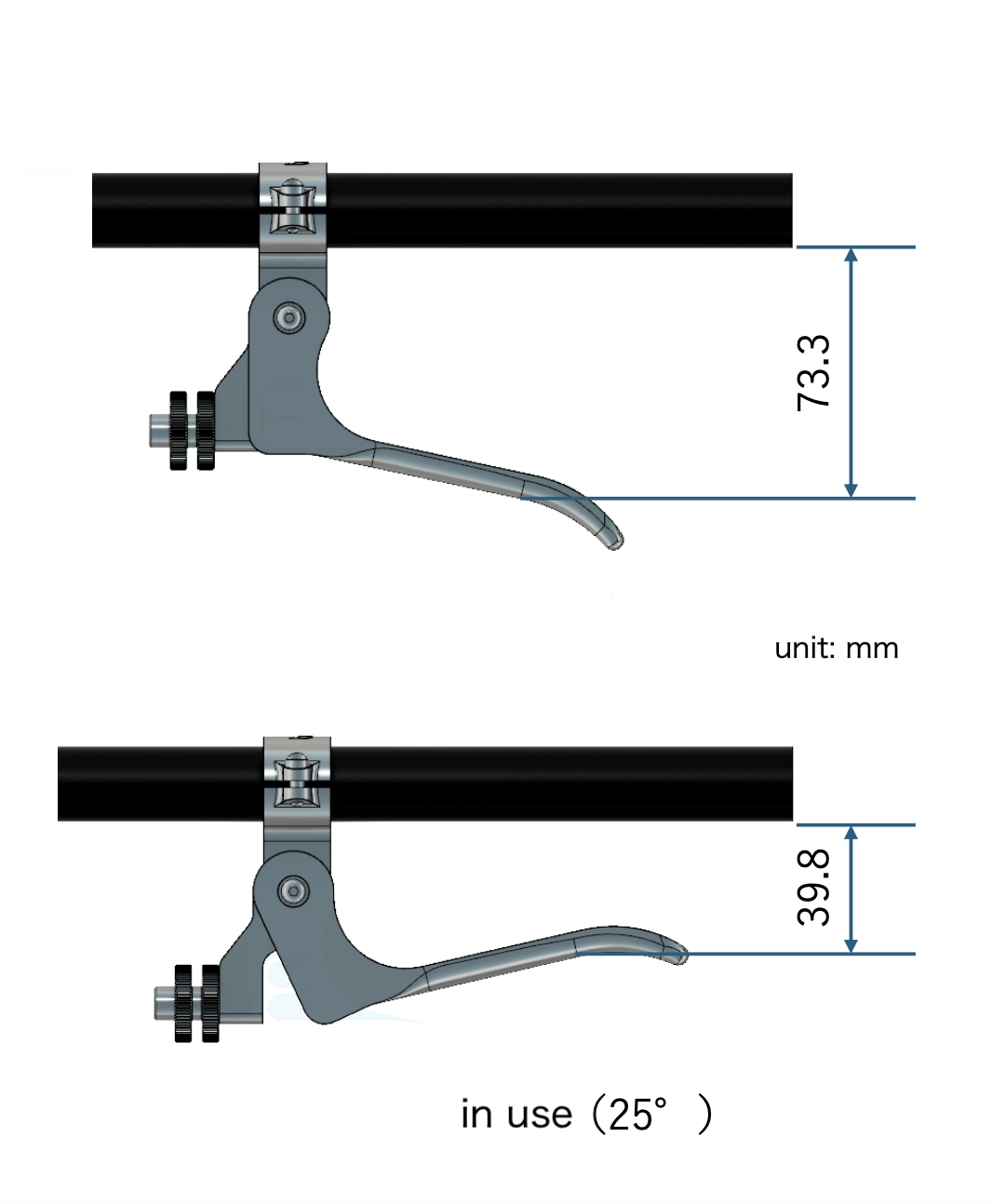 ブレーキを操作するにあたって、レバーを25°動かした状態でそれぞれロングプル/14,7mm、ショートプル/10.7mmのケーブルプルで設計されています。