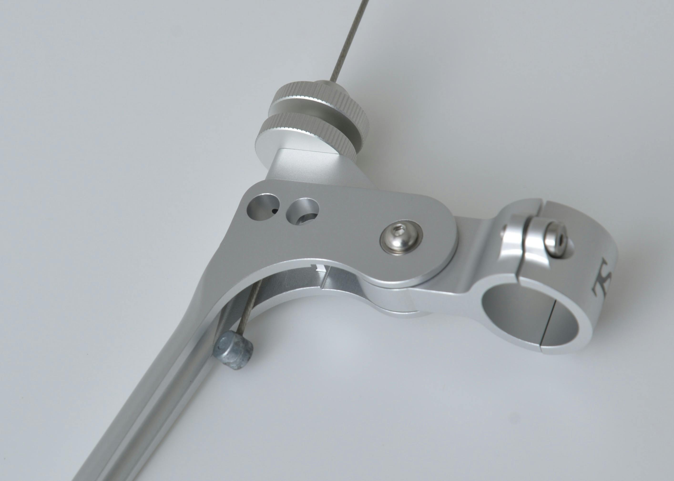 インナーケーブルの挿入口をそれぞれショートプル、ロングプル用に設けており、ショートプルは挿入口A、ロングプルは挿入口Bとなっております。大きめのアジャスターボルトはグローブ着用時でも操作がしやすいサイズとなっております。
