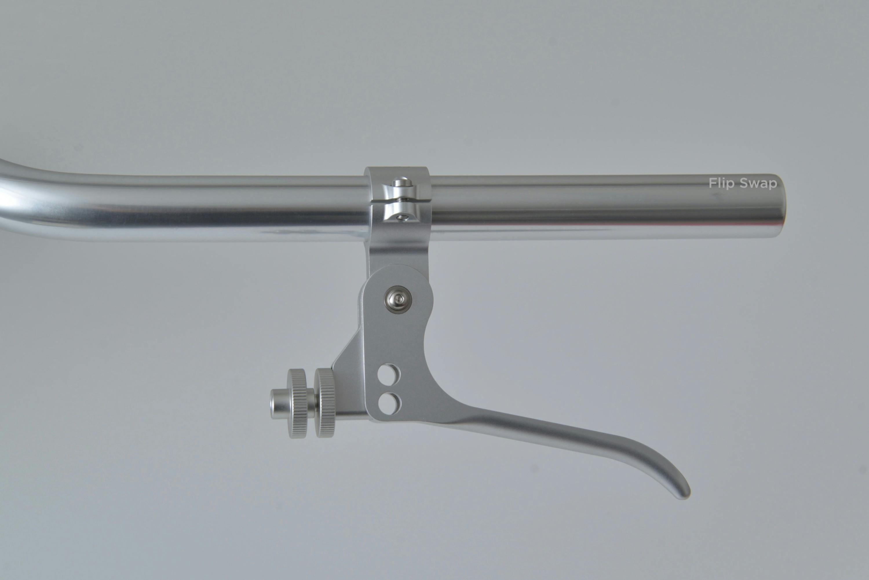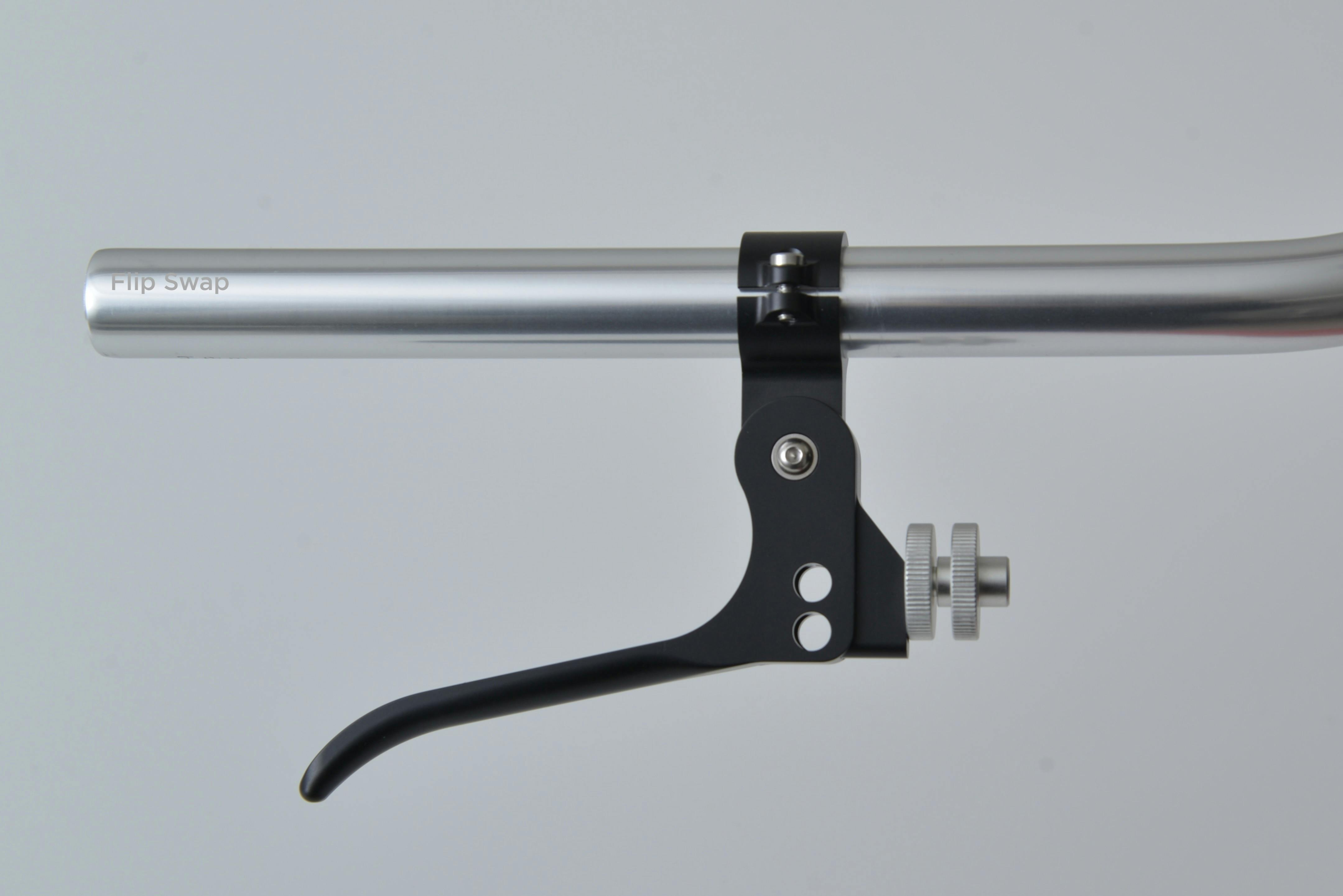 Thumbsterに続く弊社オリジナル商品になります。Flip Swapは機械式(メカニカル)ブレーキ用のレバーです。機械式ですので、油圧式以外のワイヤー引きのブレーキに対応します。リムブレーキのほとんどは機械式ブレーキとなり、また機械式ディスクブレーキにおいても引き代の違いによりショートプルとロングプルの2種類があります。Flip Swapはショートプル、ロングプルのどちらにも対応可能です。Flip Swapは 一本で左右どちらにも使用でき、Vブレーキにもキャリパーブレーキにも対応するブレーキレバーです。