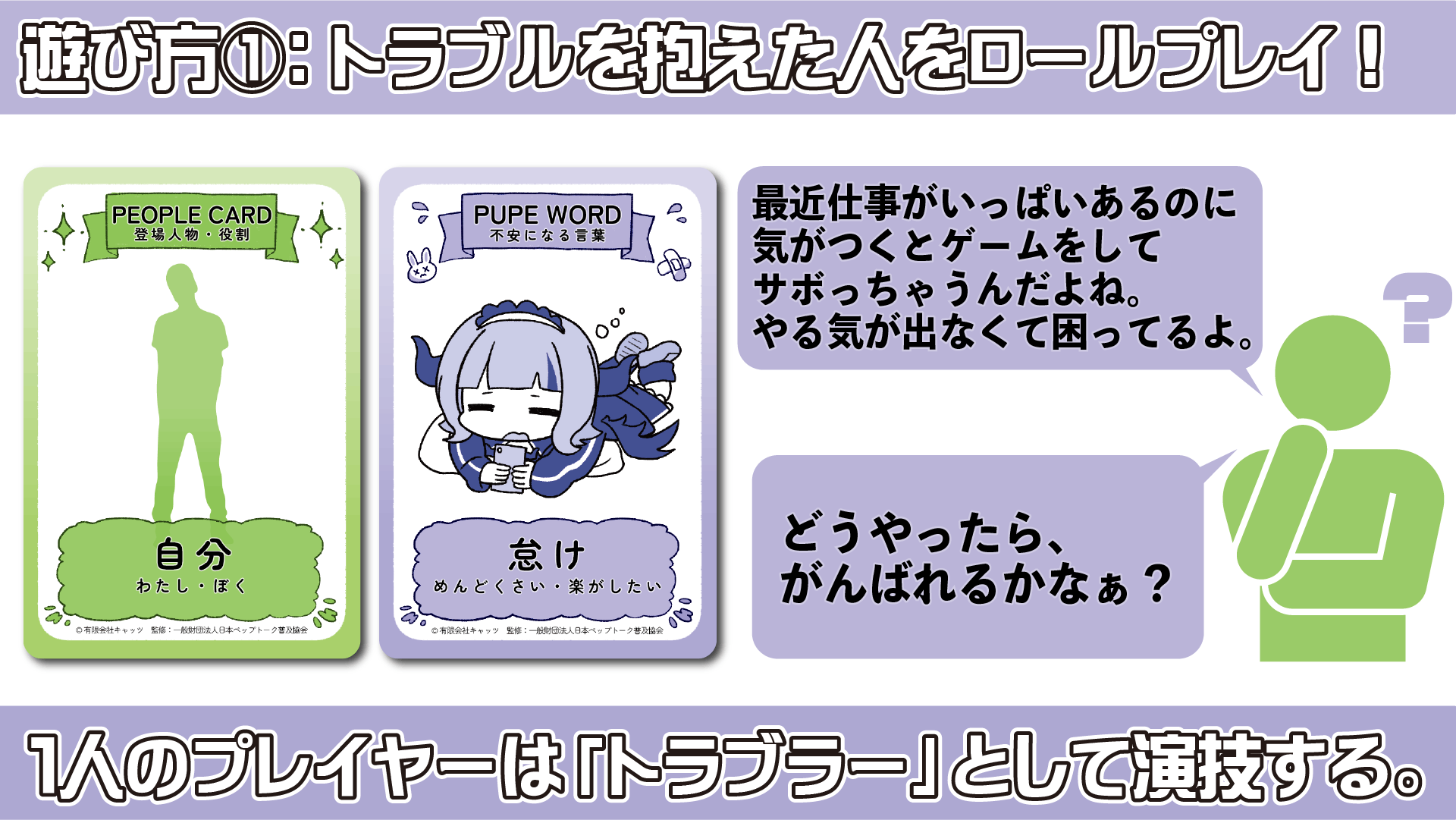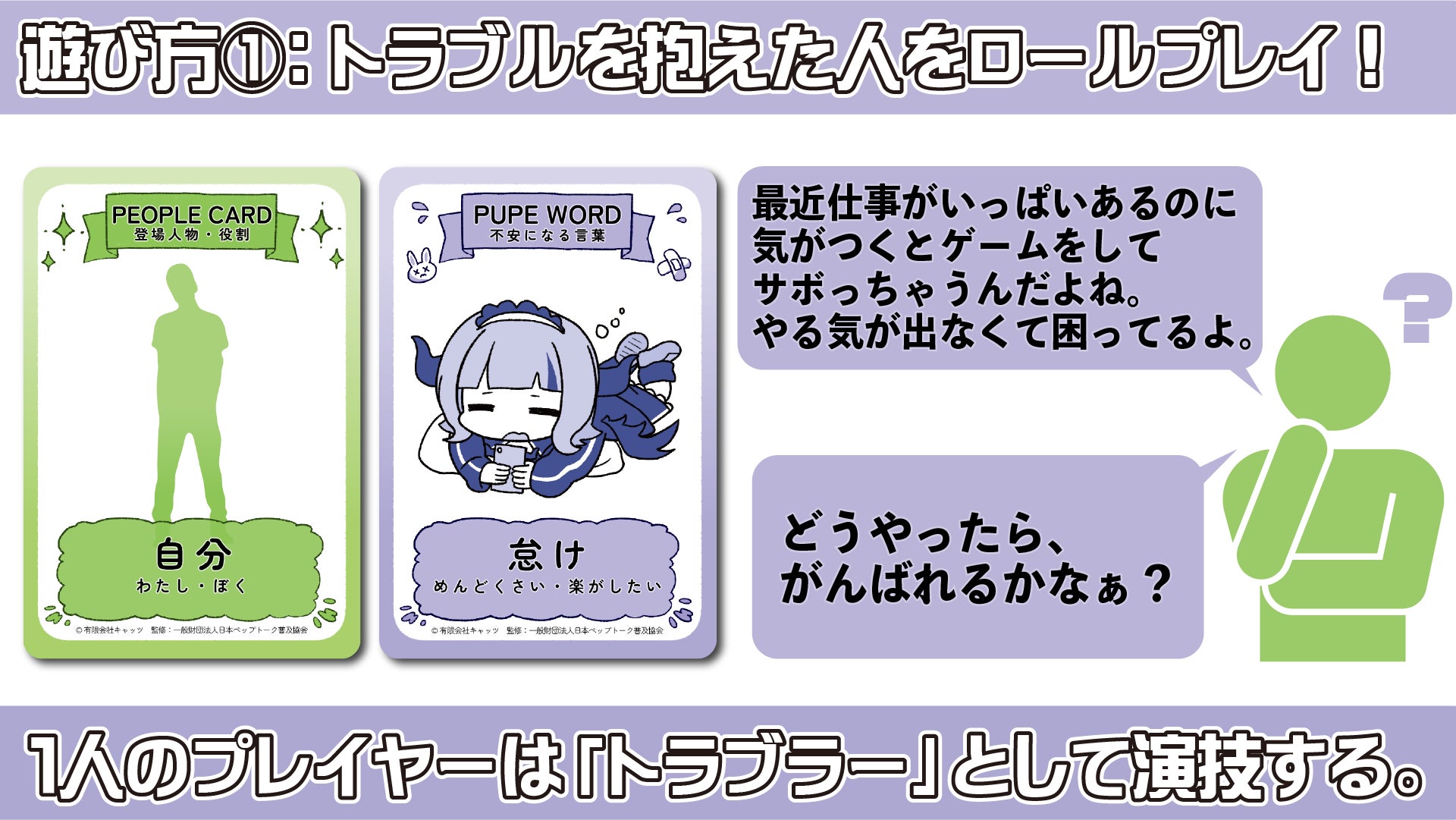 ⑤次の人にトラブラー役を回す。これを繰り返して「ペップトーク」の使い手を目指そう!