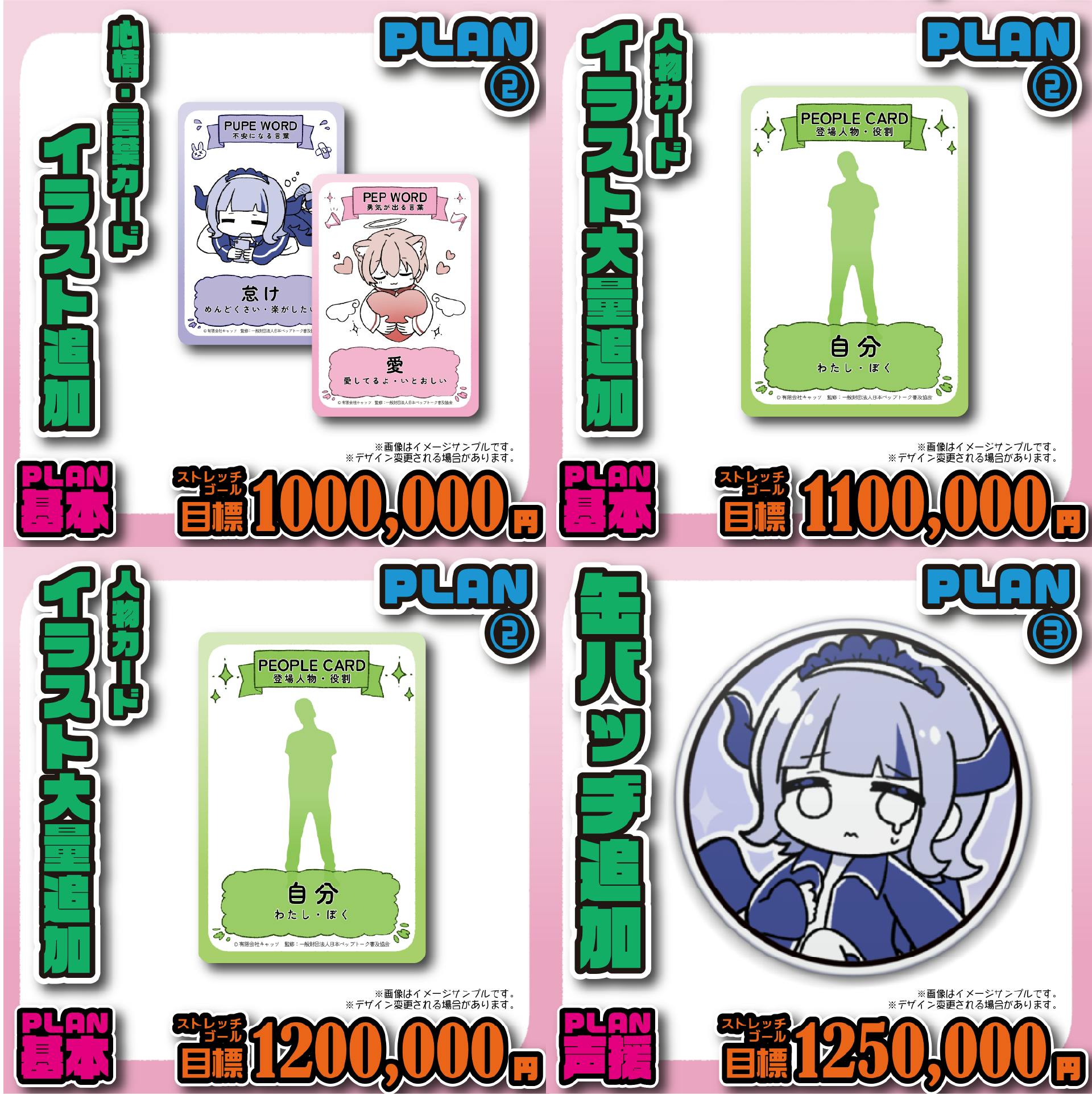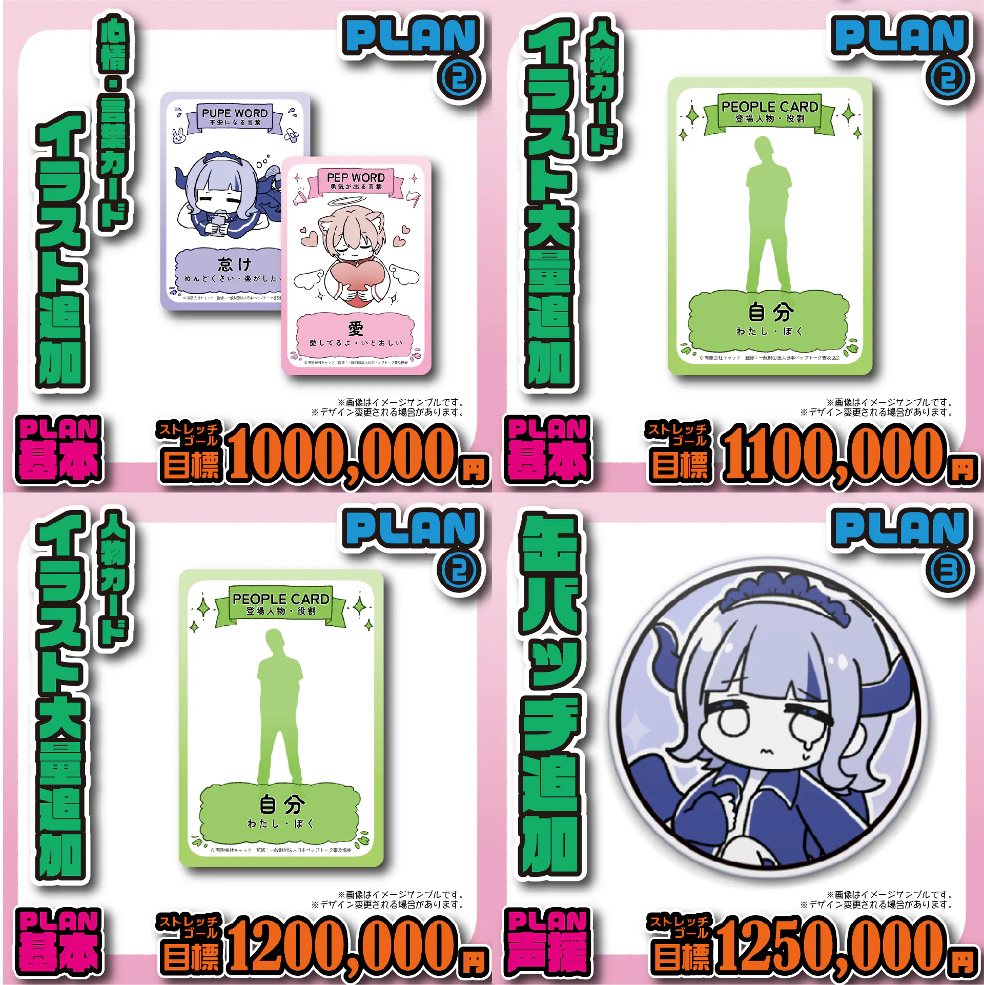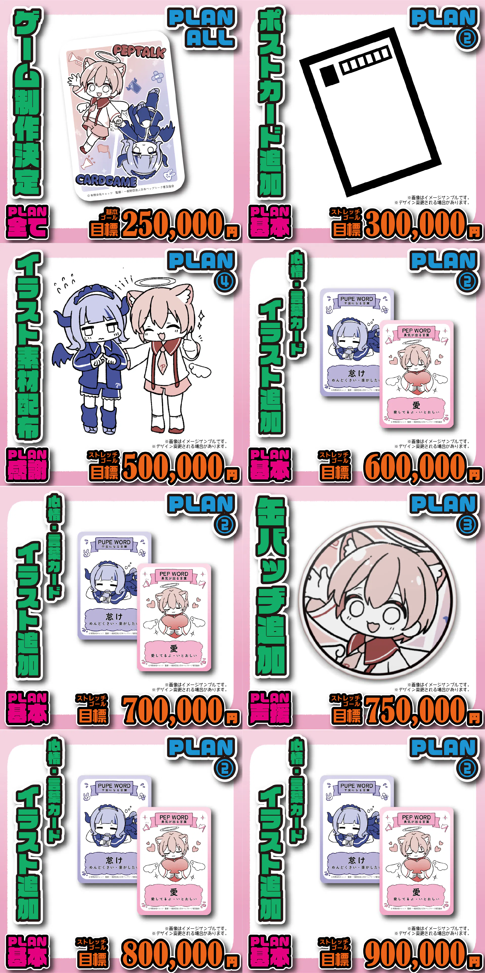 CFの進捗状況によってイラスト総数などは変動予定です。(120万円到達で全カードイラスト化!)