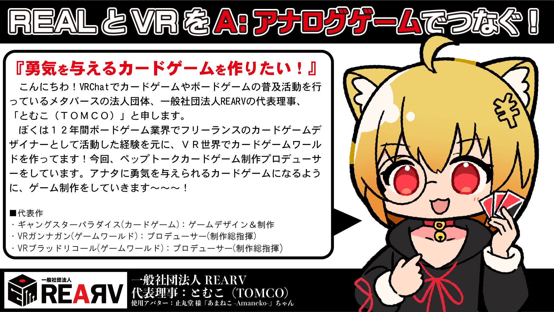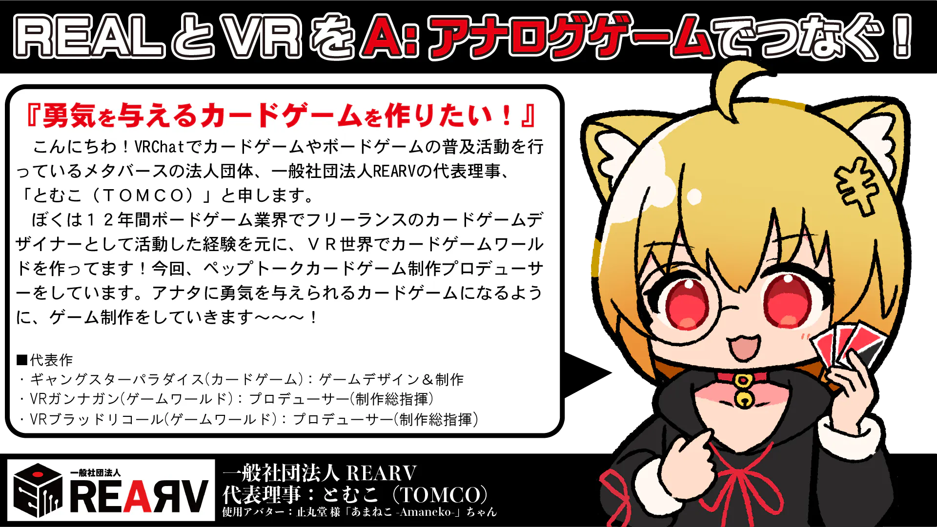 2025/10/29 18:36みなさん、おまたせしました。ペップトークカードゲーム制作担当の一般社団法人REARV とむこ(TOMCO)です。秋の空気がすっかり心地よくなってきましたね。ペプカの制作が完了しましたのでご連絡させていただきます。■制作進捗のご報告◯ 完了したもの・カード本体の印刷が完了!・支援者様向けカードの丁合作業・化粧箱の封入が完了!・リターン品グッズ(全種)の入稿が完了!・ポストカード・テーブルクロス・サコッシュ:到着済み!◯ 現在の進行中・プレイマット、アクリルトロフィー、アクリルフィギュア、アクリルキーホルダー、缶バッジ:発送待ち・プレイマットは印刷エラーがあり、すでに再入稿済み。修正版の到着待ちです。すべてのグッズが揃い次第、順次発送を開始します!みなさんのもとへ「ペップ(元気)」を詰め込んだカードをお届けできる日が近づいています■️今後の予定11月22日〜23日開催の「ゲームマーケット2025秋」にて、 「一般社団法人REARV」ブースより、ペップトークカードゲームをお披露目&販売開始します。それまでに、リターン品(※一部受注生産品を除く)を順次発送予定です。※名刺、イラスト、個別メッセージなどの受注生産分については、11月中にご連絡予定です。■とむこよりひとこと支えてくださる皆さんの応援が、制作の力になっています。もうすぐ、カードたちがあなたのもとに届けさせていただきます!素敵なカードが盛りだくさんで元気になれるカードゲーム、ペップトークカードゲームを今しばらくお待ち下さい。■制作・文責:一般社団法人REARV とむこ(TOMCO) もっと見る