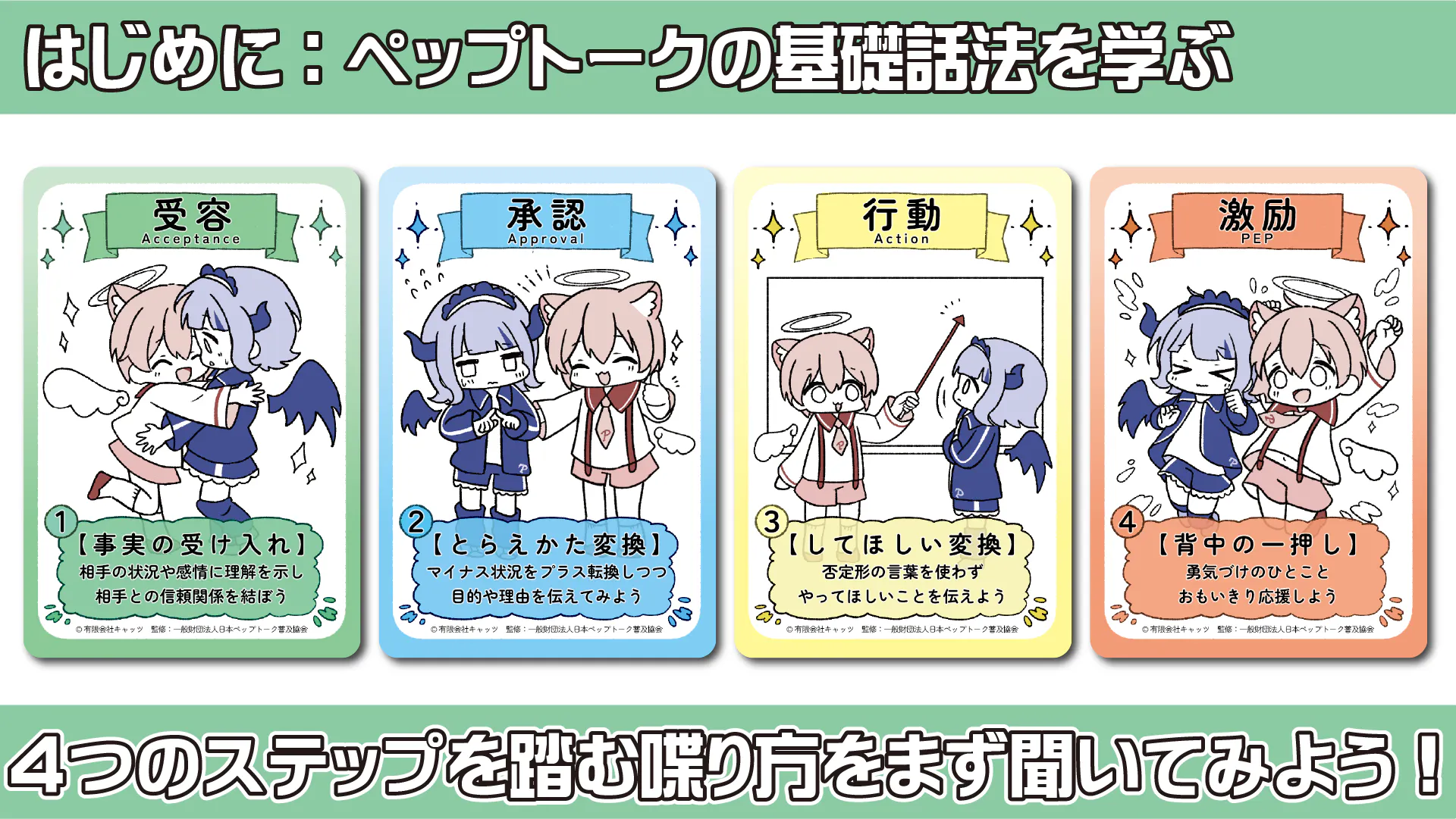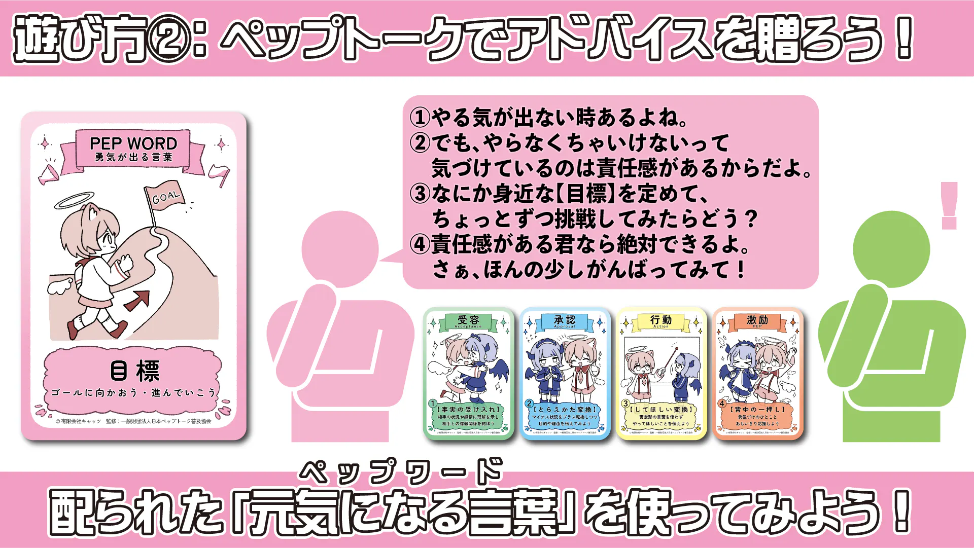 でも、ペップトークは思ったより簡単でシンプルなんです!遊びながら体験もできますよ。