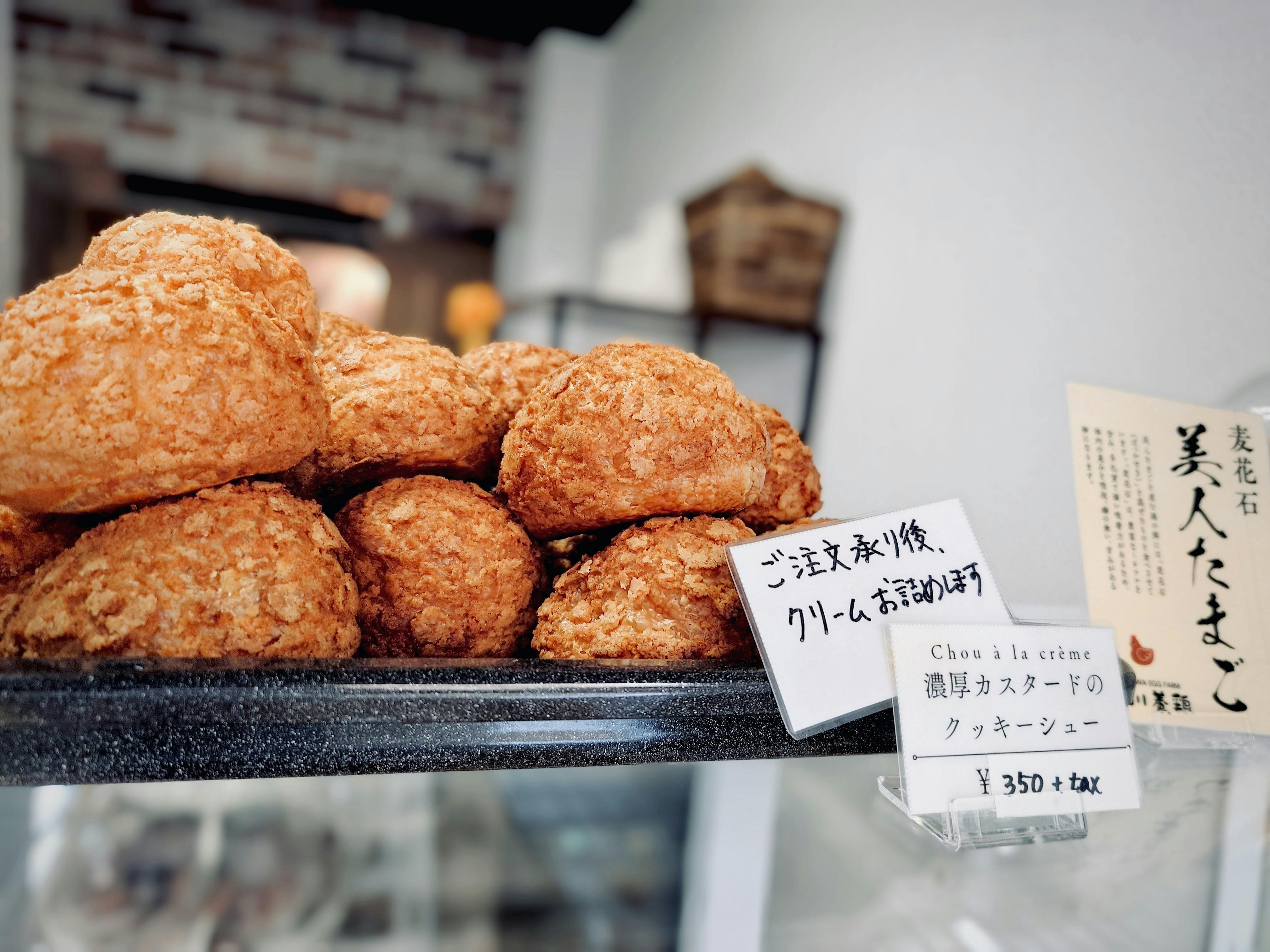 特にカスタードは、専門学生時代に恩師から教わった「美味しいカスタードを炊けることが洋菓子の基本中の基本」という言葉を胸に、特別な想いで作っています 。材料には、私の地元でもある南河内の谷川養鶏さんの「美人たまご」を使い、卵黄のコクを最大限に引き出した、濃厚でなめらかな味わいが自慢です。