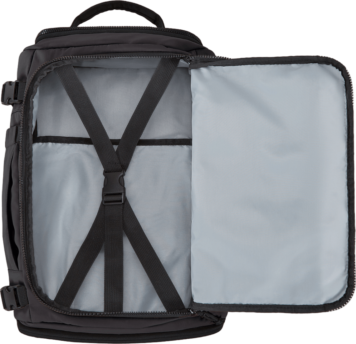 メインポケットがスーツケースのようにパカッと開き、収納しやすく、どこに何があるのか一目瞭然。