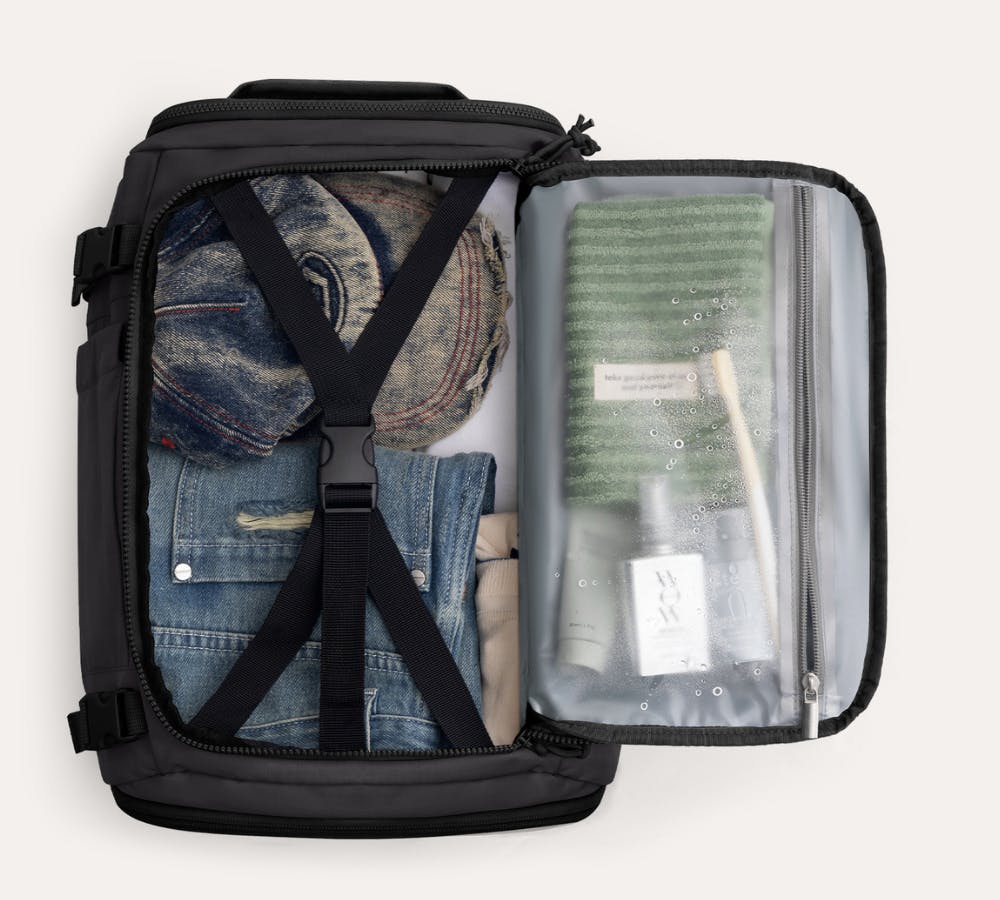 スペースをしっかり確保しながら、見た目はコンパクトなままなので、機内持ち込みや街歩きでもスマートな印象を保てます。