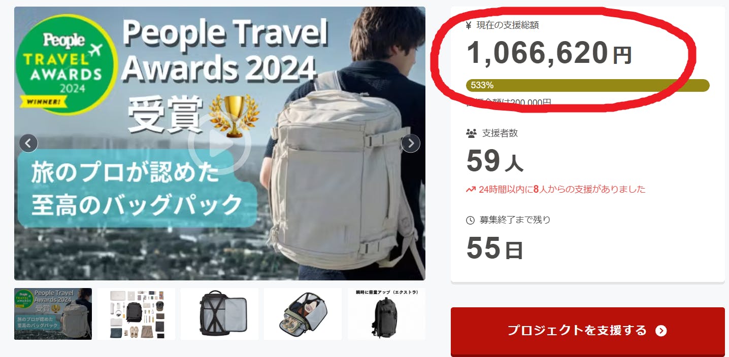 本プロジェクトは開始からわずか7日間で、総支援額100万円を突破しました(達成率533%)!