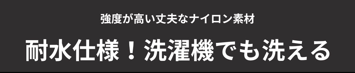 耐水仕様だから、急な雨でも中身をしっかりガード。さらに、洗濯機で丸洗いできるので、いつでも手軽に清潔をキープできます。