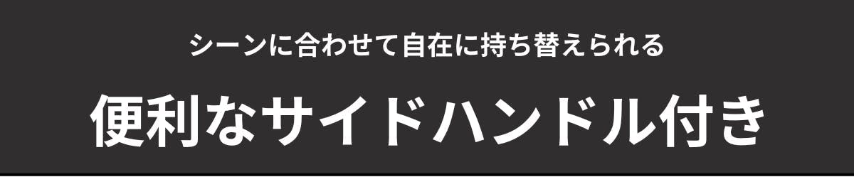 サイドハンドル付きだから、背負うだけでなく、手持ちでもサッと持ち替えOK。