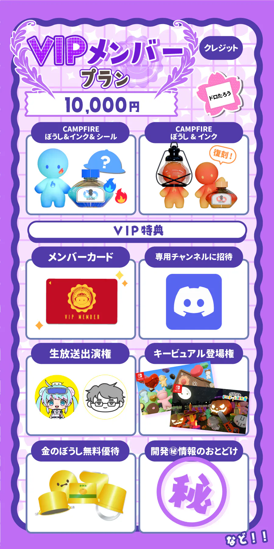 リターンの発送費用をできる限り抑えるために、VIPメンバーカードを除いてすべてデジタル製品のリターンとさせていただきました。