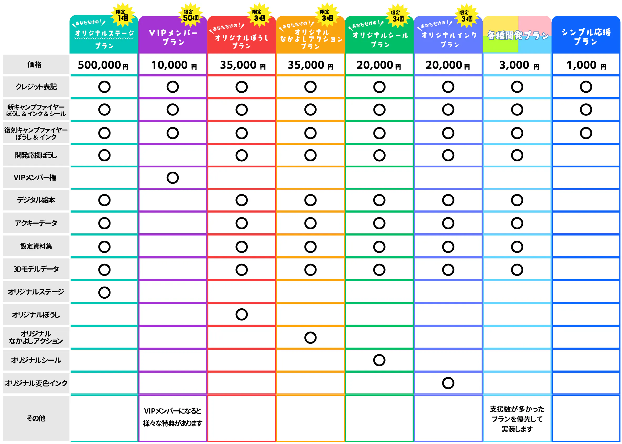 以降の10,000円以上の支援プランには、数量限定の特別なリターンが付属いたします。