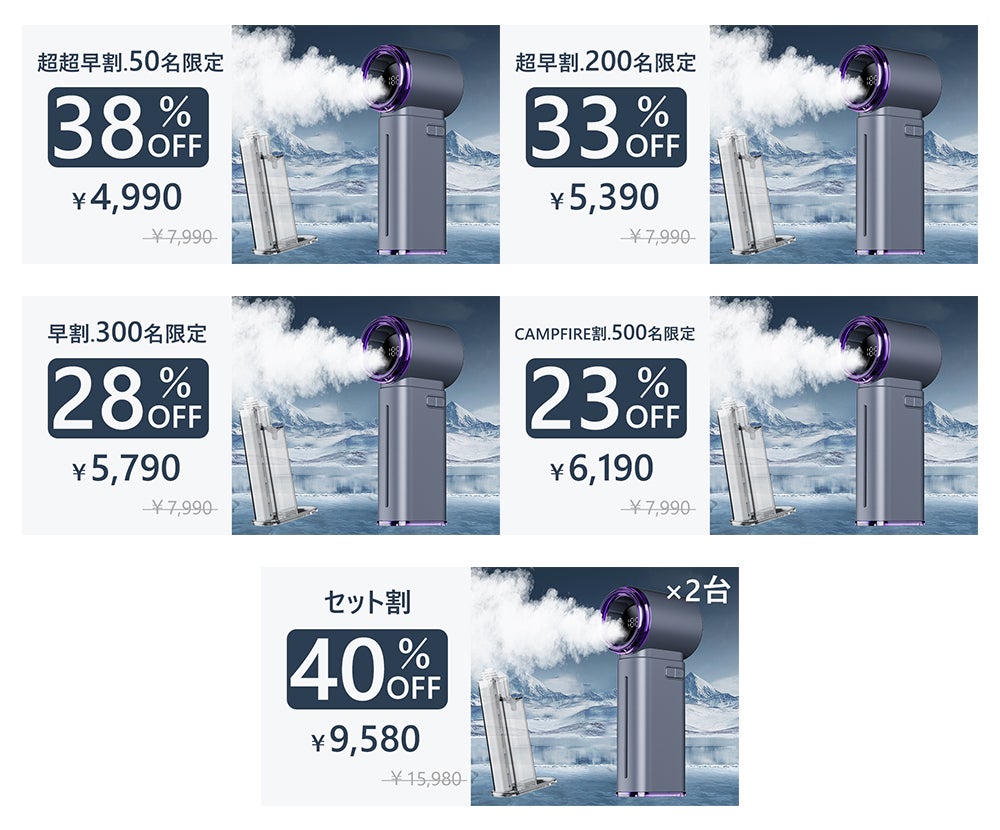 2025/04/21 17:13お世話になります。実行者の株式会社でございます。この度はハンディ冷風機Cool Mist Goにご支援いただきましてありがとうございます!お陰様でプロジェクトが目標金額を達成いたしました!ありがとうございます!暑い夏が近づいておりますので、今後ともより多くの方々に涼しい風をお届けできるよう、スタッフ一同全力で取り組んで参ります。ぜひSNSなどでのシェアにご協力いただけますと、大変嬉しく思います。引き続きよろしくお願いいたします。 もっと見る