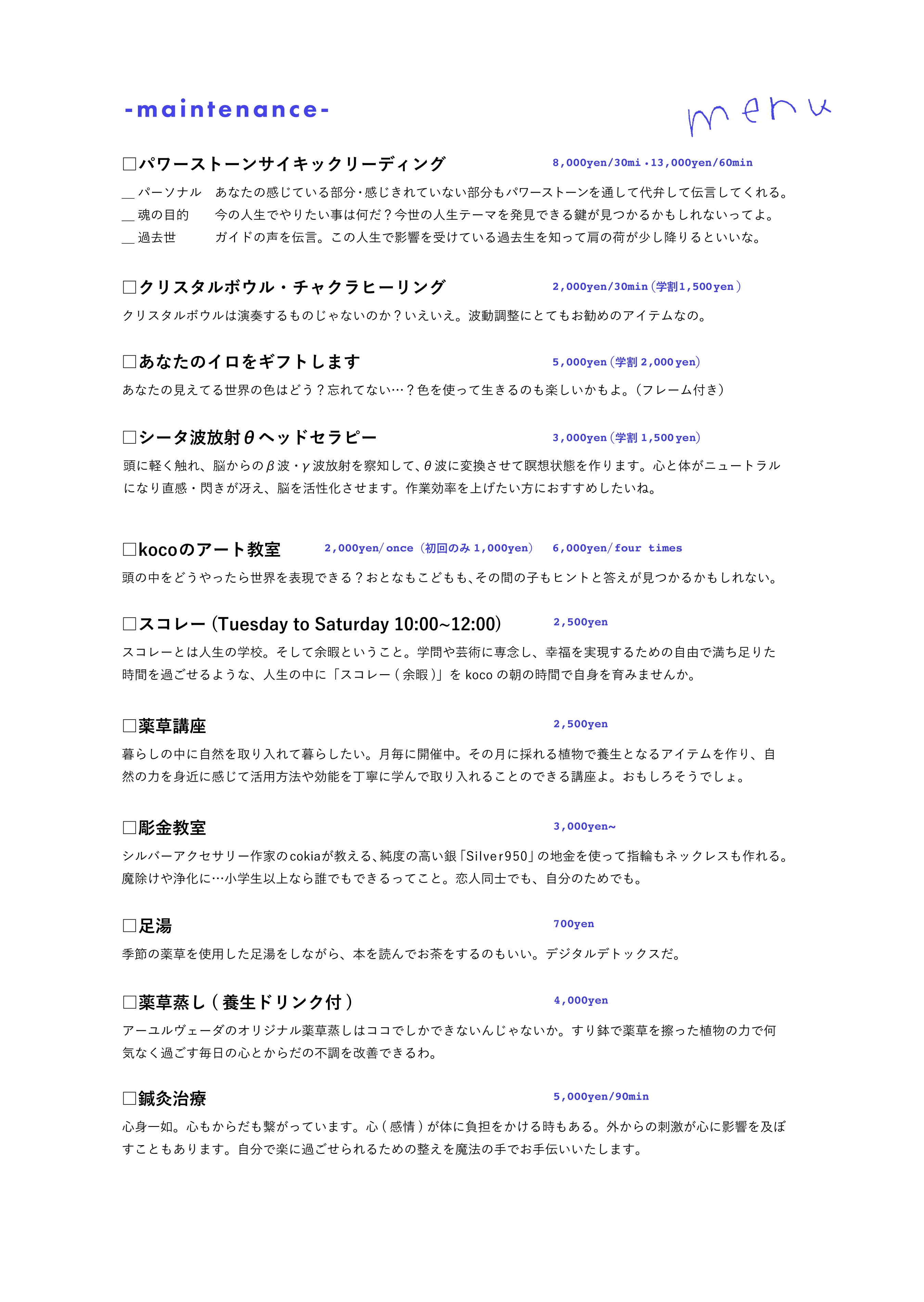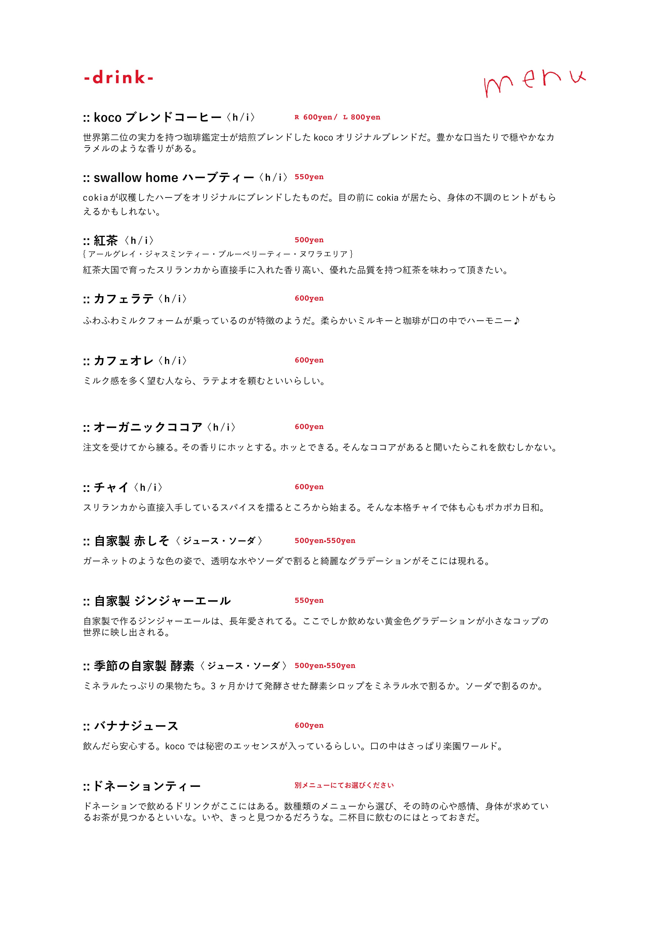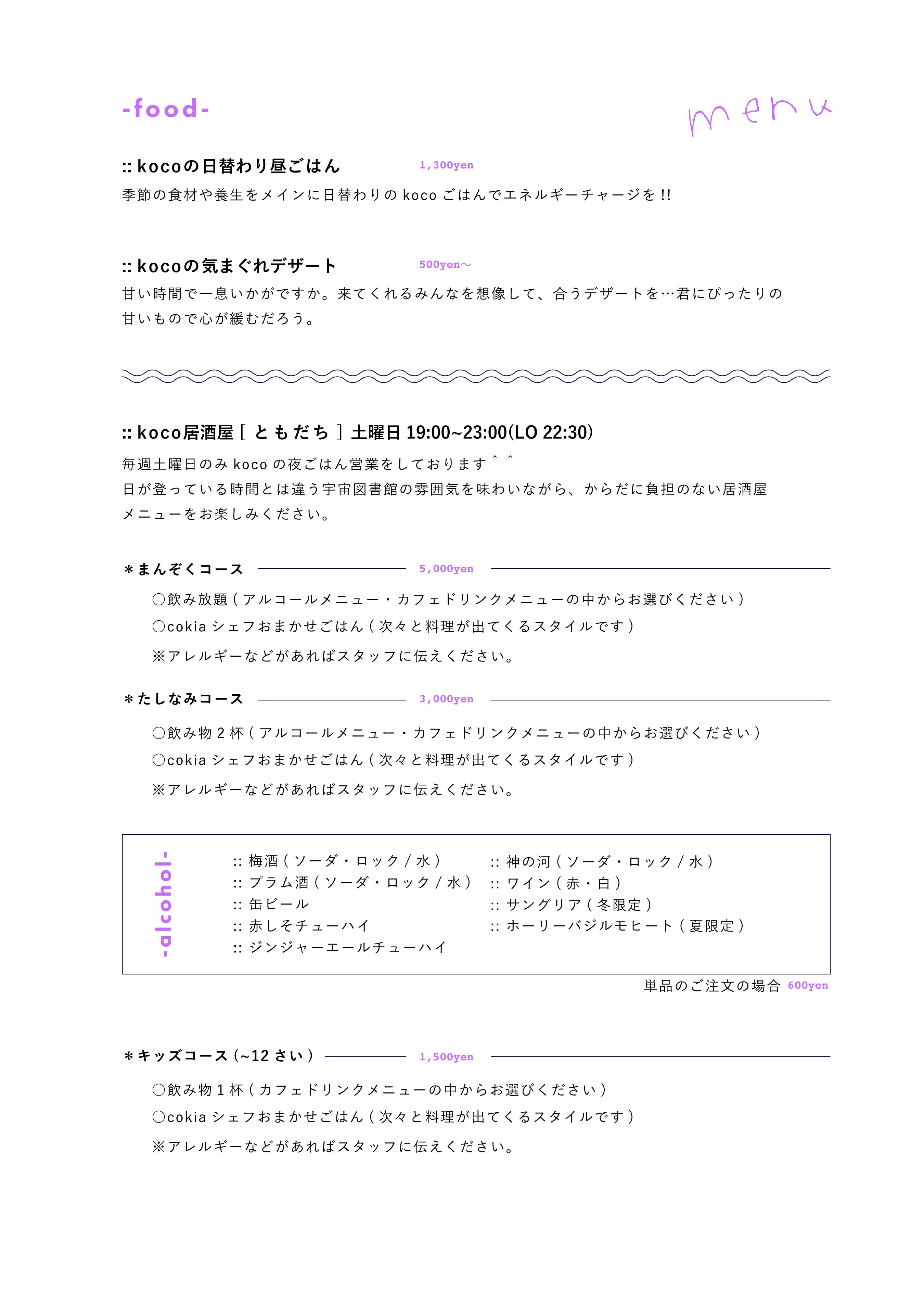 (※現在のkocoでのメニューになります)