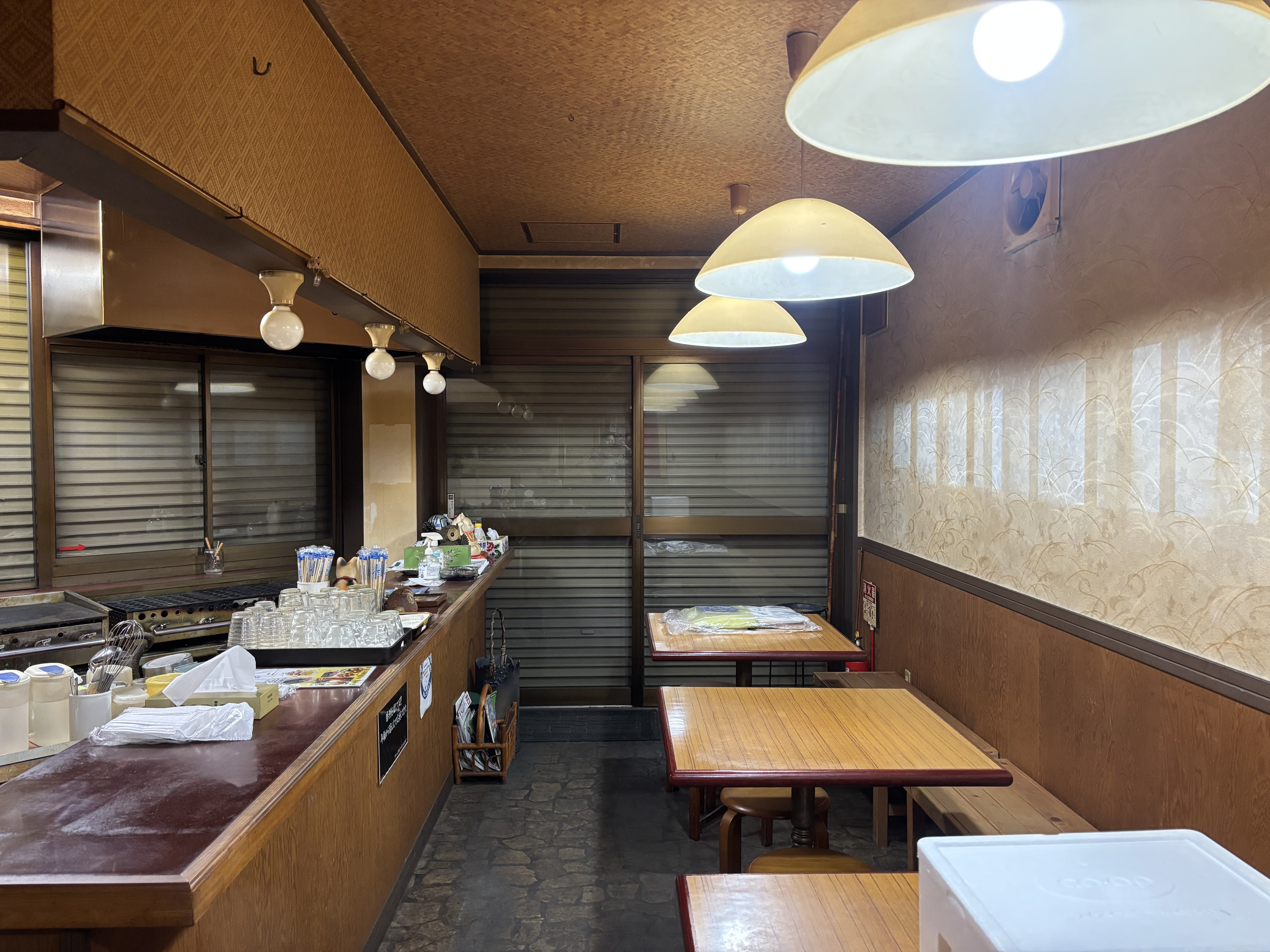 元々はお好み焼き・たこ焼き屋さんを営業していた場所なので、鉄板をそのまま使用し、たこ焼きの販売を考えています🐙