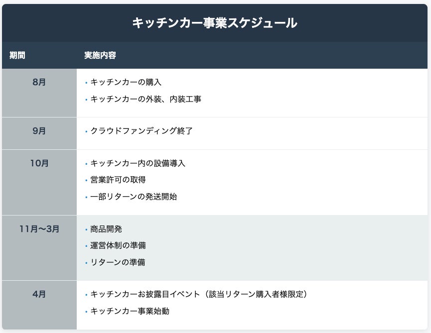 そんな夢いっぱいのキッチンカーを実現することが、私たちが叶えたいこのプロジェクトのもう一つの目的です。