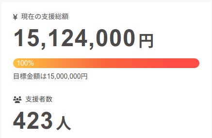 皆さんのご支援で1500万円の目標額を達成いたしました!!
