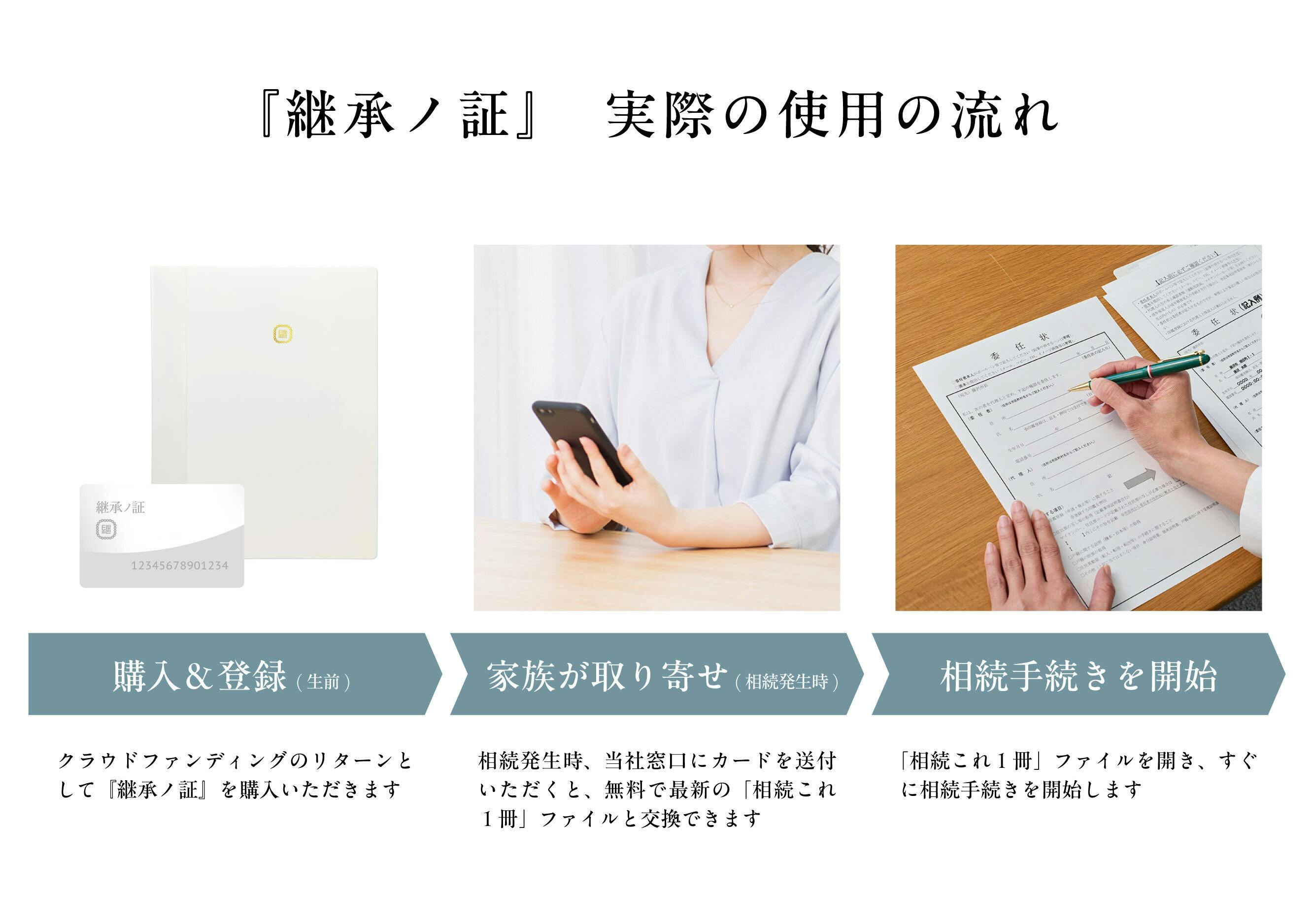 クラウドファンディングのリターンとして『継承ノ証』をお届け。 お手元に届いたカードは、あなたの「相続準備済み」の証明書です。
