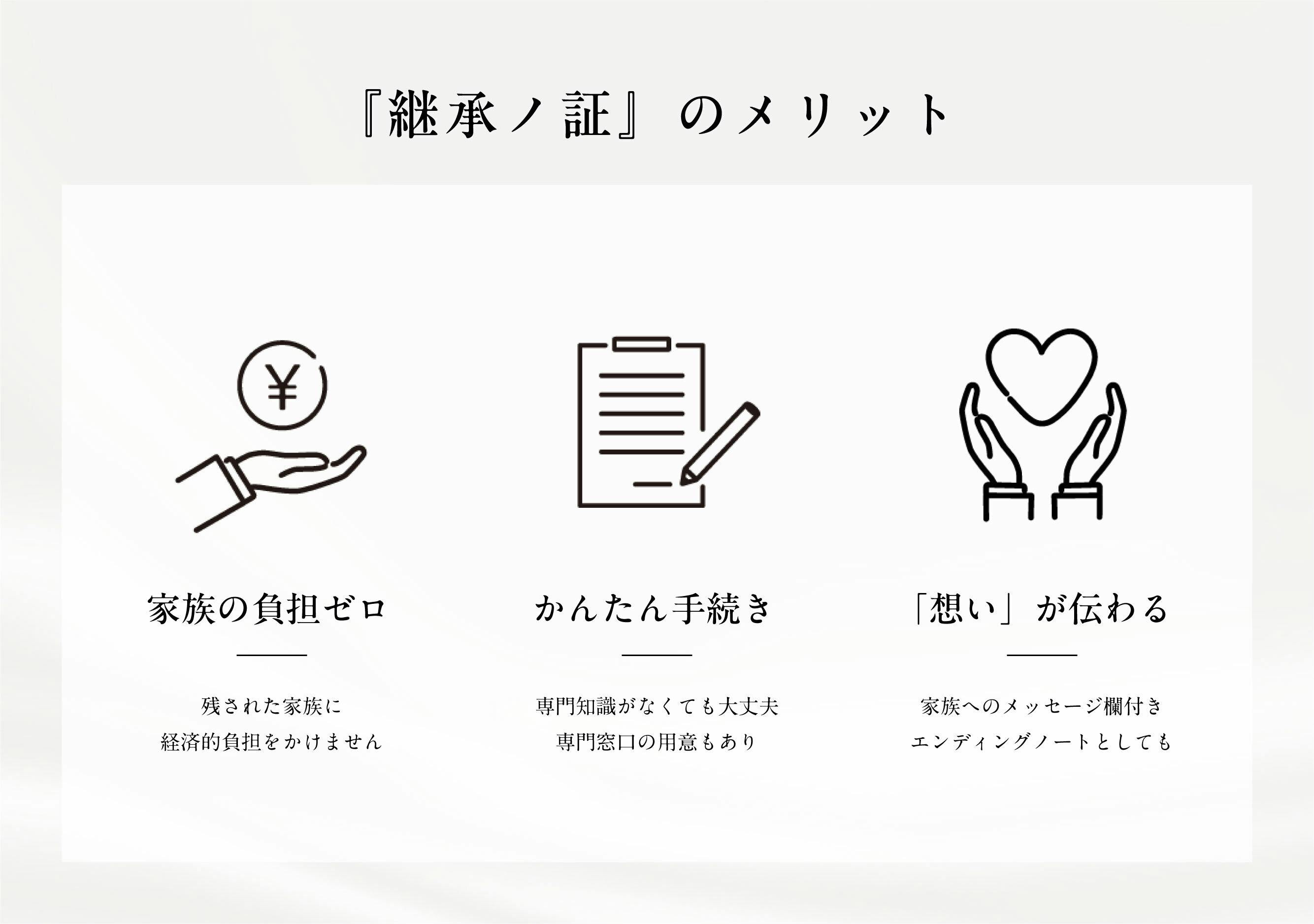 最後までご覧いただき、本当にありがとうございます。『継承ノ証』は、“死”を避けるものではありません。むしろ、家族への愛を“生前に形にする”ための希望のツールです。