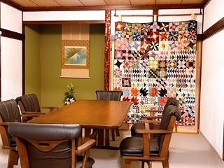 プレオープン日までバタバタで、プレオープンの日の夜にやっと、『フレンドシップキルト製作ワークショップ』で町内の方々に製作協力いただいたキルトを壁に飾ることができました。