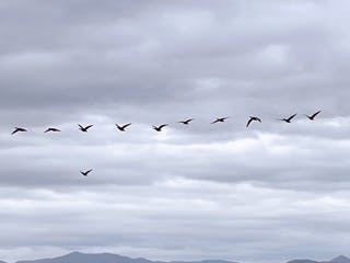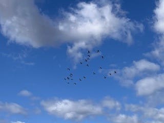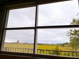 運が良ければ、Cafe晴耕雨読の店内からもマガンの通過を眺めることができます。