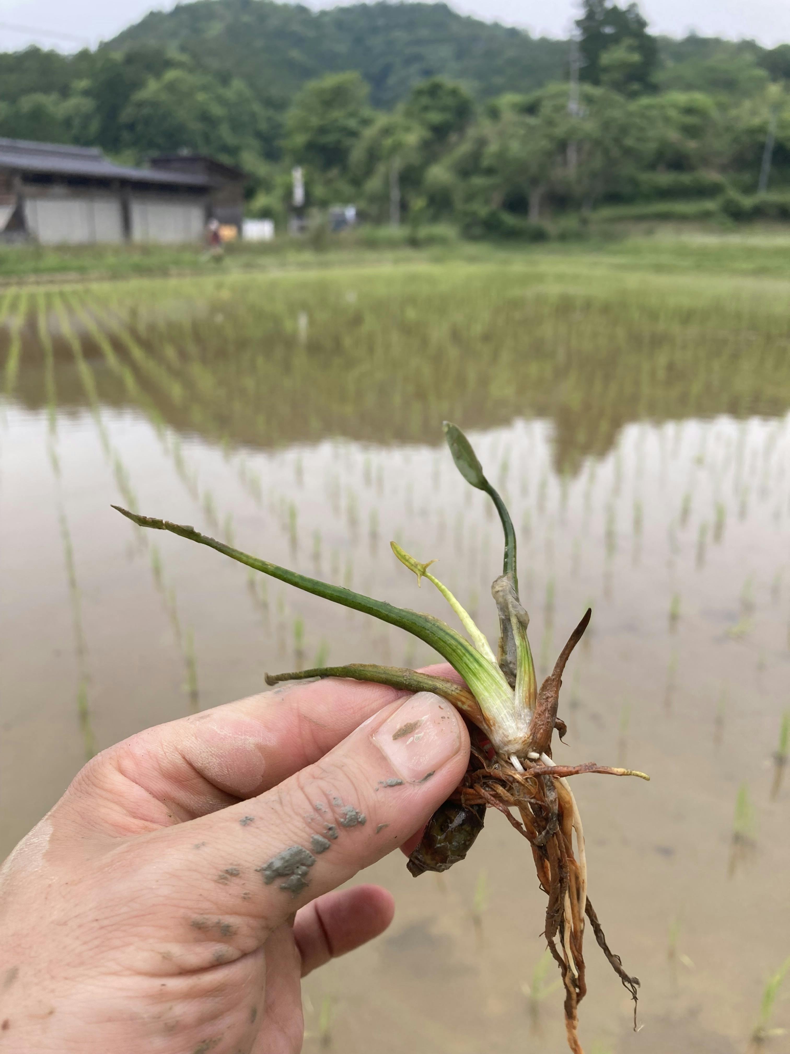 私たちのお米作りは除草剤、農薬をまかないのでいわゆる雑草と言われるものとの戦いが田植えの3日後からスタートします!