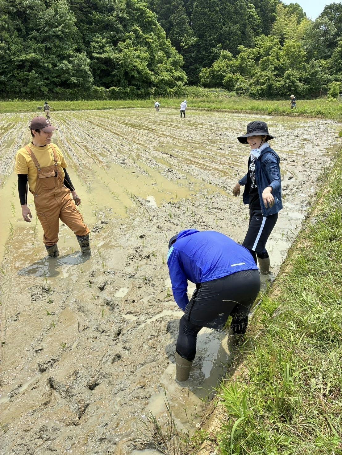 田植えがひと段落してホッと一安心もつかの間私たちのお米作りは除草剤、農薬をまかないのでいわゆる雑草と言われるものとの戦いが田植えの3日後からスタートします!田んぼの土壌環境にもよると思いますが、ナガタンボではオモダカという草がたくさん生えます。。。田植えから1週間で早くもこんなにも大きく成長…夏になれば稲の背丈を超える勢いでどでかいオモダカに成長よって今のうちから竹ぼうきなどを駆使して雑草の種が活着しないようにするのと、水を濁らせるために人力で取り組みます合鴨農法や今ではラジコンやロボットを使った方法もありますがナガタンボは人が汗をかいて頑張ります!!私たちは今年田んぼを一つ増やしました不思議なことに新しく増やした田んぼはずっと水が濁っており、草も全く生えませんすぐ隣の田んぼなのに土壌環境が違うせいか、まったく別物!今年始まったことではなく、昨年も草がまったく生えず稲だけがしっかりと成長していましたおかげで草取りはひとつの田んぼだけで助かっていますが(笑)草取りはチームプレー!毎回メンバー全員が集まれるという訳ではないので「行ける人が行く」という助け合いの精神のもと取り組みます!頼れるメンバーが集まっているナガタンボ夏までこの戦いは続きます…安心で安全なお米をみんなに食べてもらいたい!がんばります!!