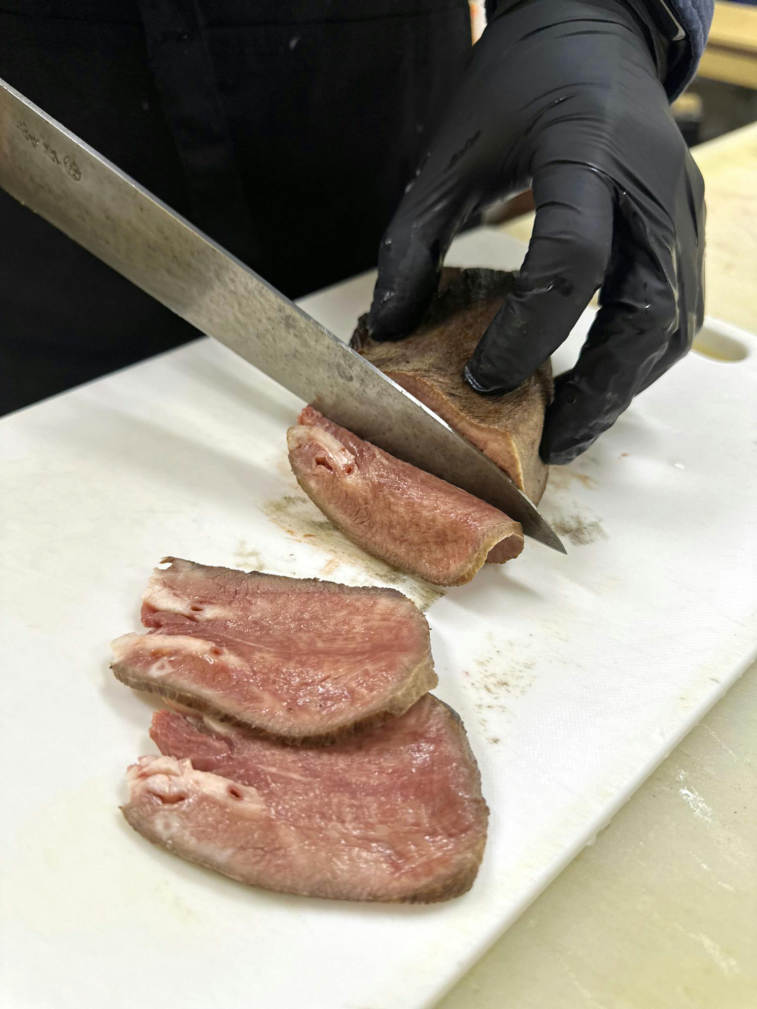 これにより生まれるのは、まさに「牛タンのたたき」。