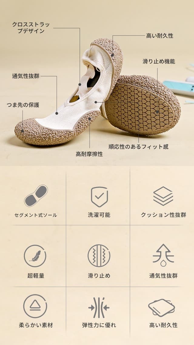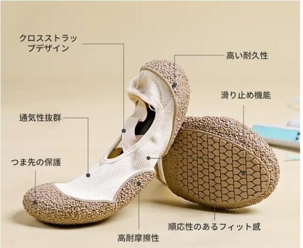 ◎弾力のあるクロスストラップにより、かかとがズレにくく、軽量で快適です。素肌に包まれる裸足感覚で、肌に優しい快適さを提供します。