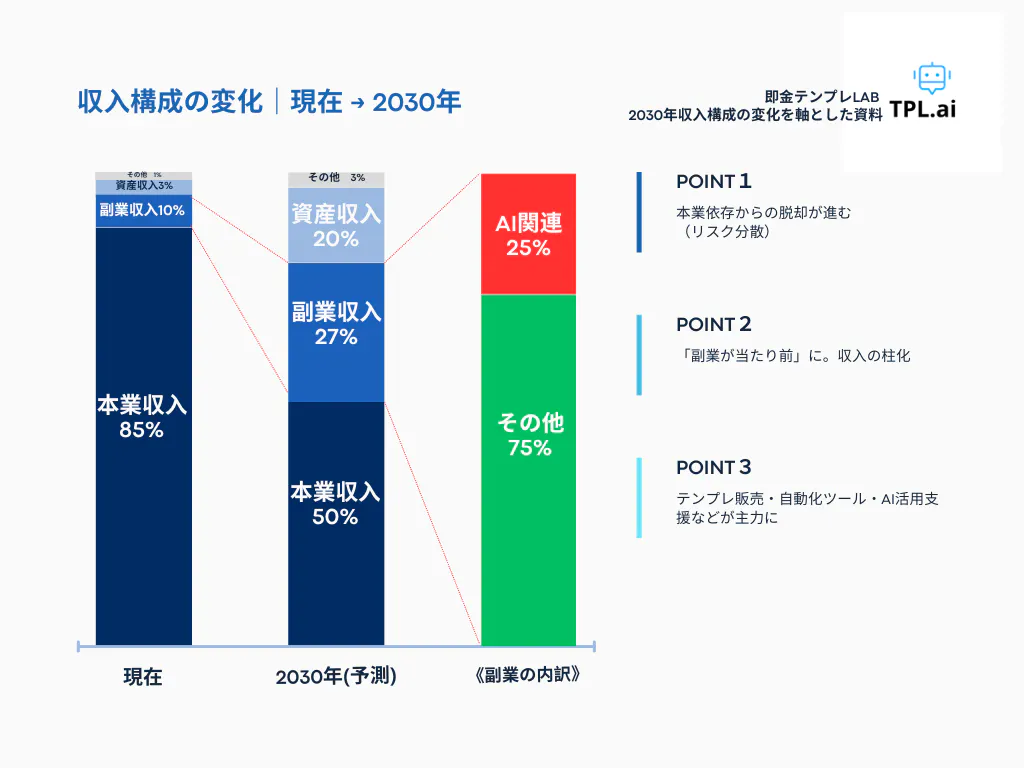 収入の主役は、本業から「仕組み」と「副業」へ。