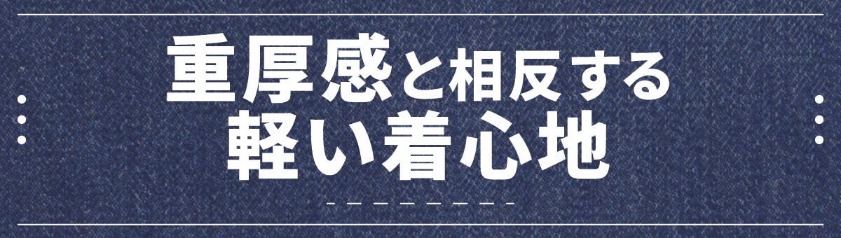 カイハラの"日本製"ストレッチデニムだから、ヴィンテージ感のある重厚な見た目と、相反する軽快で自由な着用感を実現。