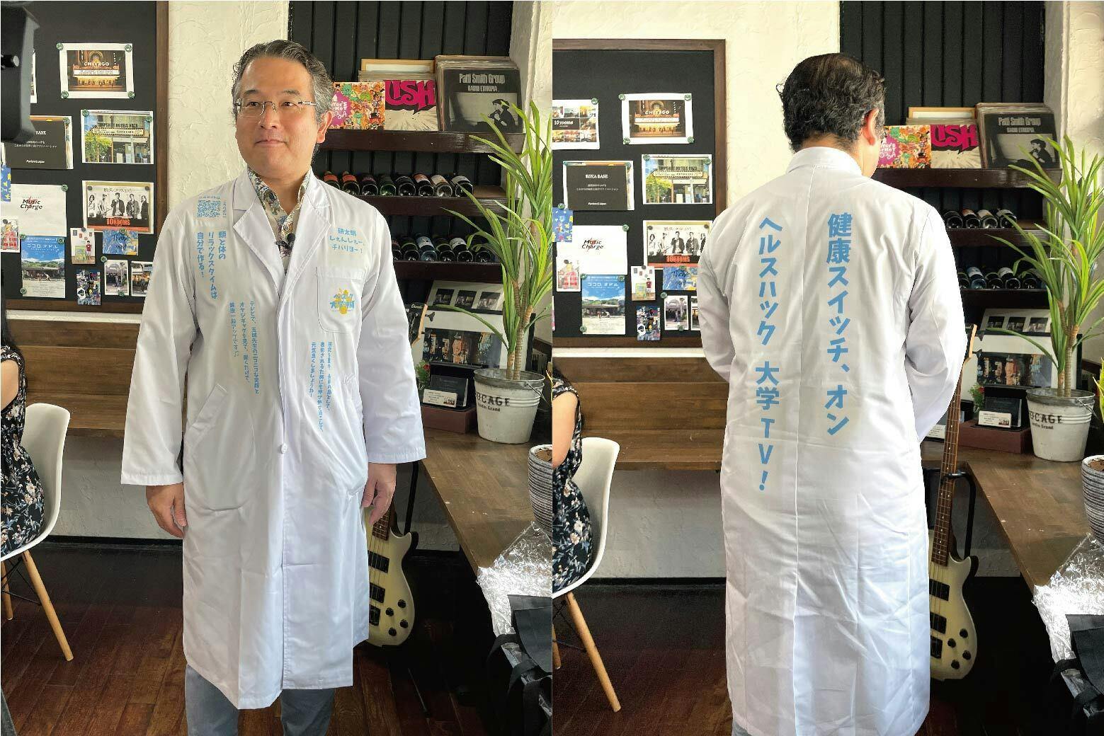 玉城先生の白衣にメッセージを掲載