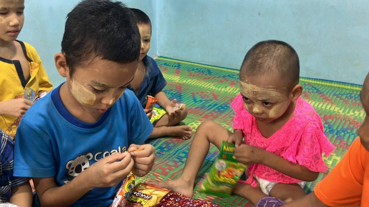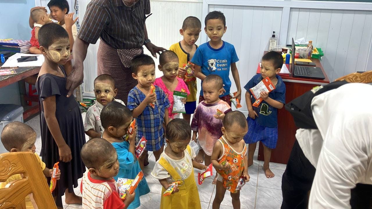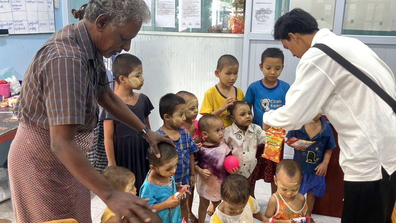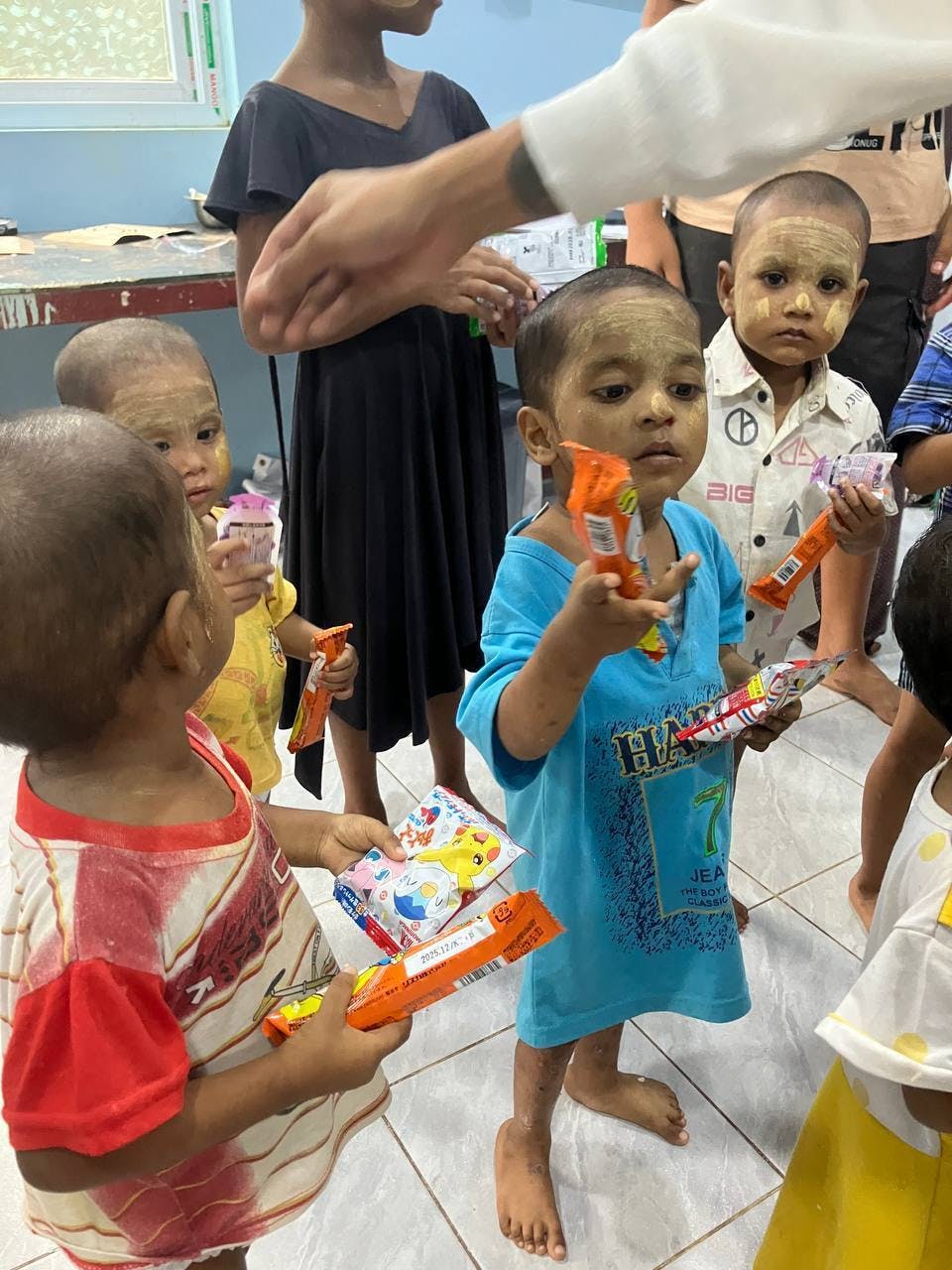 9月3日にミャンマーのダラ地区の孤児院にて、日本から持ち込んだお菓子を現地の孤児院に寄付させていただきました。