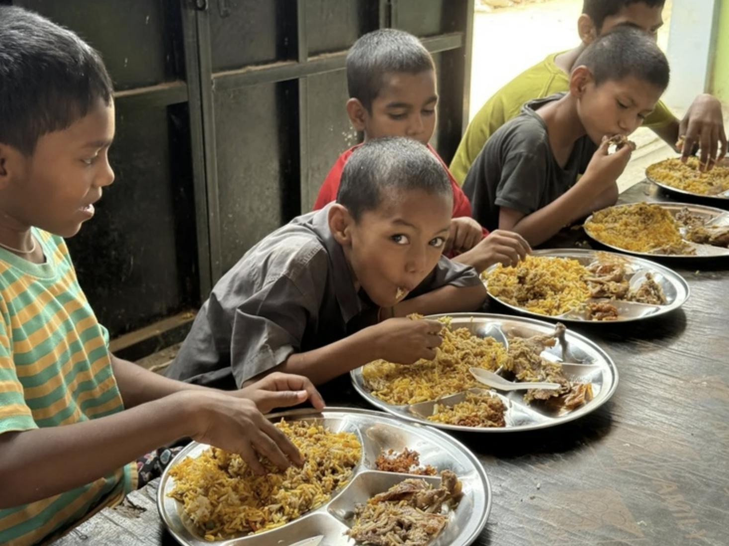 私達は2025年3月31日に現地の孤児院にて、30人の子どもにビリヤニを提供させていただきました。