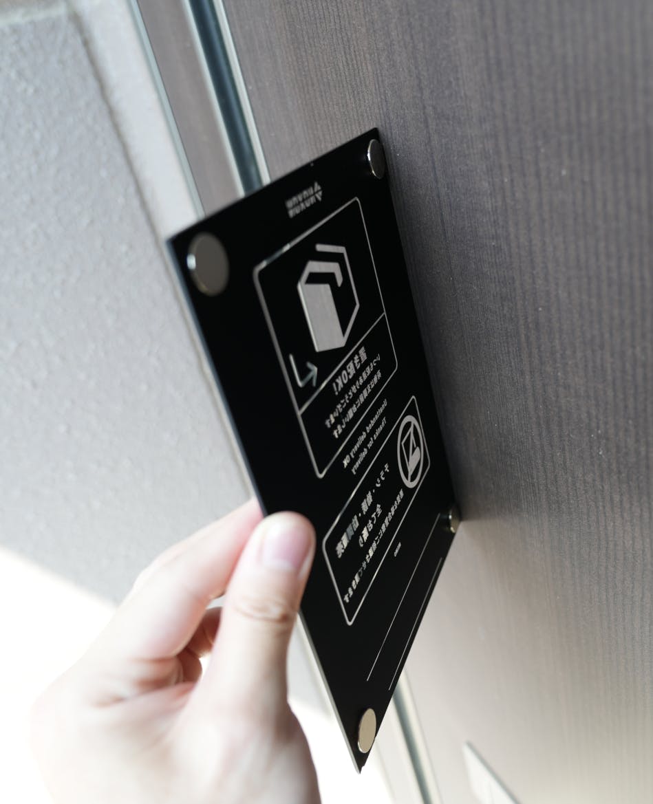 配達員の声や既存のステッカーの問題点を洗い出し、使いやすさとデザイン性を兼ね備えたボードを開発しました。
