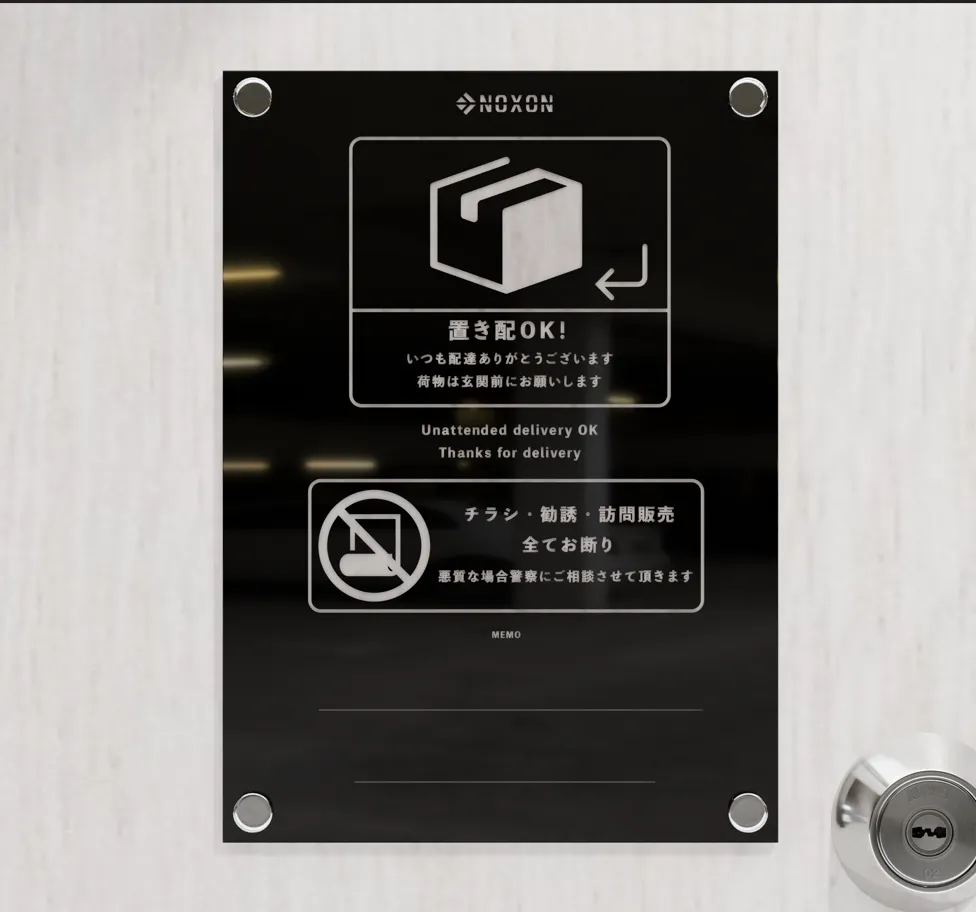 ・多機能デザイン:置き配指示、メモ、チラシ防止を一枚でカバー。