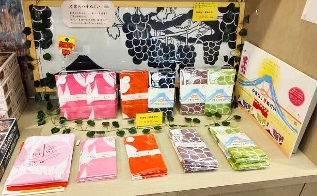 ・丸一仙三が手伝い実った巨峰(種なし・2キロ〈3〜5房〉)&やまなし手ぬぐい(富士山と葡萄)〈巨峰〉※紺色