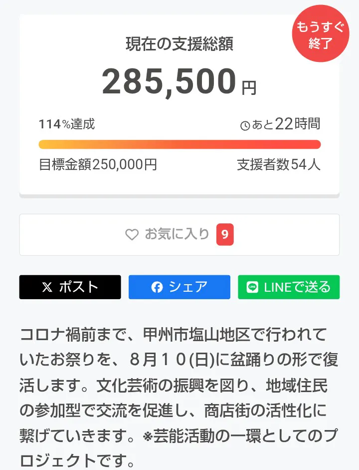 8月 5日(火) クラウドファンディング 終了
