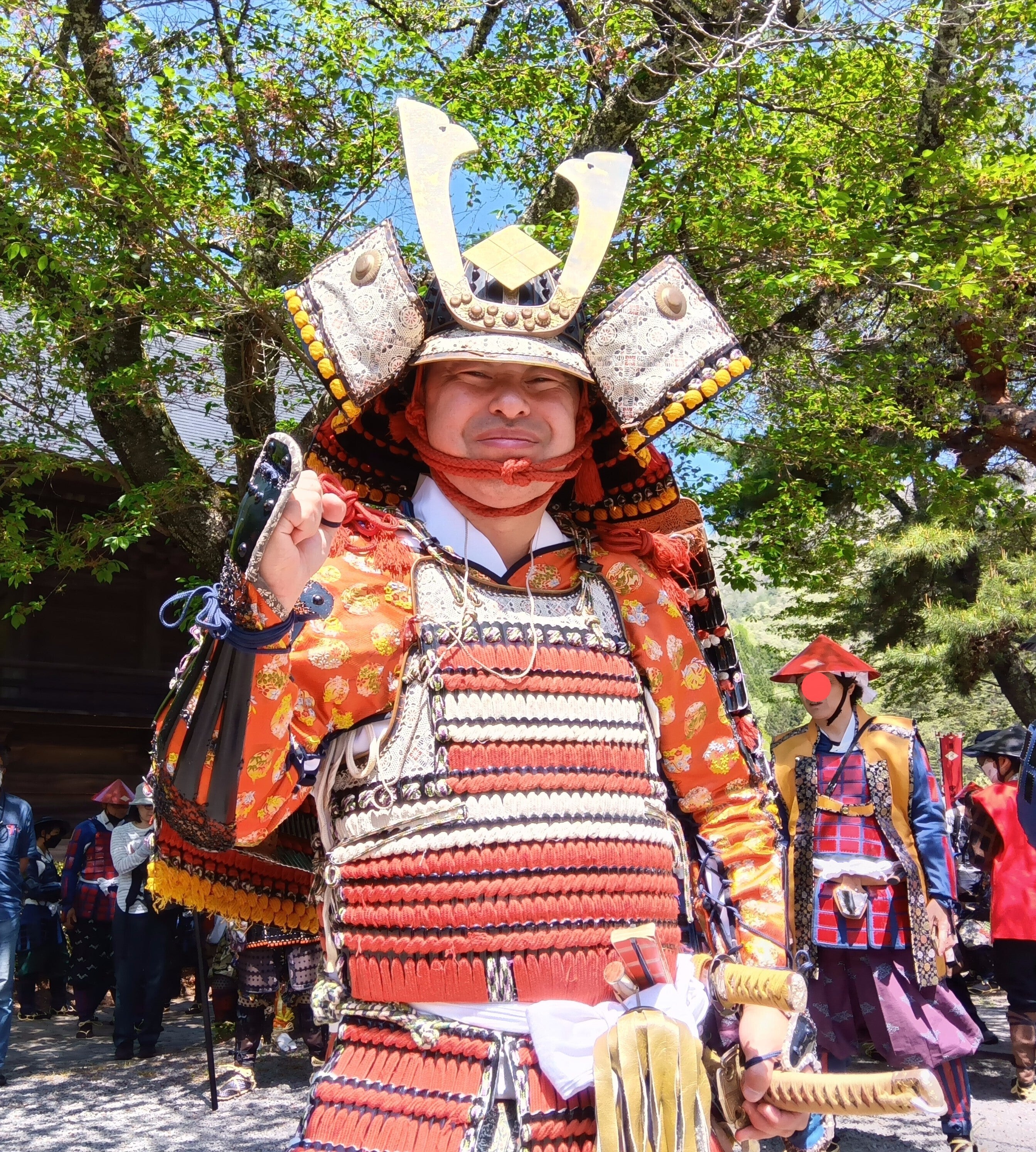 武者行列で勝ちどきをあげる 丸一仙三